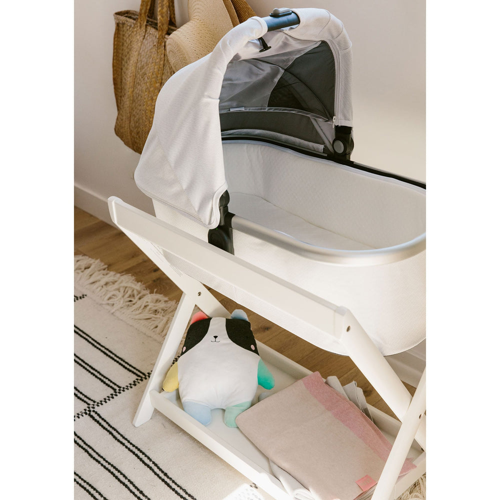 Take your Bassinet from boulevard to bedroom by snapping it into the secure and elevated Bassinet Stand. Bassinet snaps into the stand, just like the Vista or Cruz attachments.