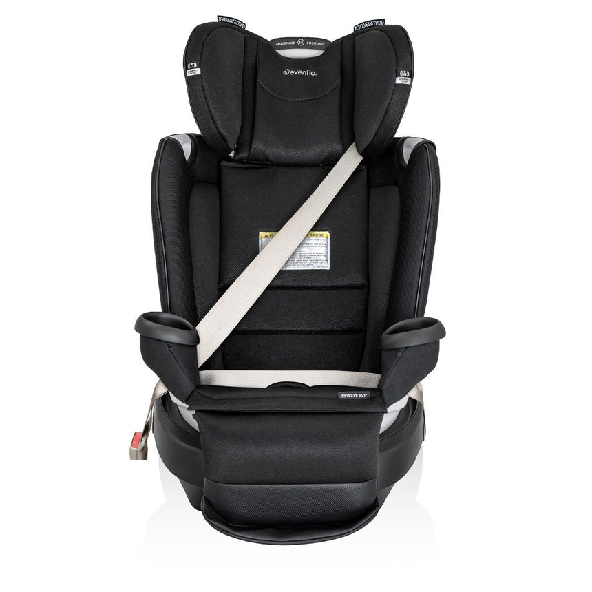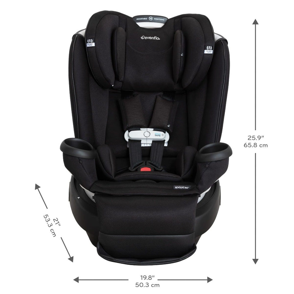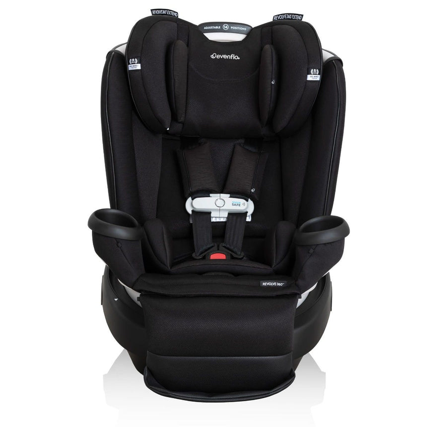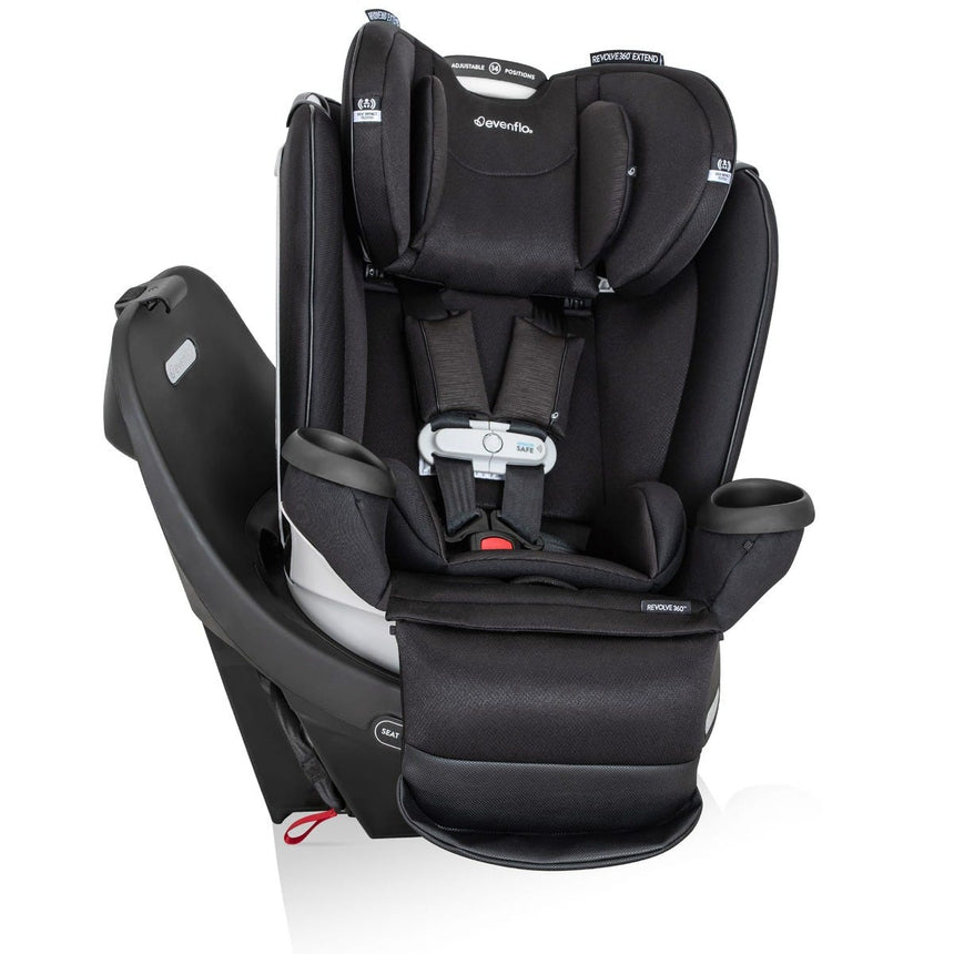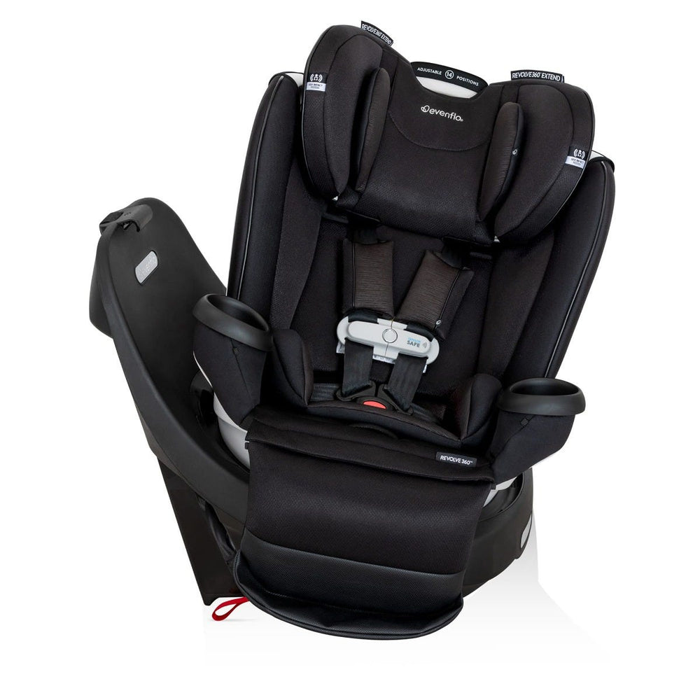 The revolution just got extended! The Evenflo® Gold Revolve360™ Extend All-in-One Rotational Car Seat with SensorSafe™ offers the extended security of rear-facing all the way up to 50 lb. Child safety experts say the longer your child remains rear-facing, the better, and the Revolve360 Extend is here to help with peace of mind all the way around. A spin-off of the Revolve360, America’s bestselling rotating car seat, the Revolve360 Extend offers one-hand, 360° rotation that makes it easy to get your child in and out of the car. But a 360° rotating car seat is just the beginning. You’re looking for a safe car seat — and the smart car seat choice is a connected car seat. The Evenflo Gold Revolve360 Extend will help put your mind at ease when it comes to child car seat safety, featuring SensorSafe to connect you to your little one from the backseat. While your eyes are focused on the road, integrated SensorSafe technology alerts you in real-time to four potentially unsafe conditions from your child’s car seat via your phone: unexpected chest clip unbuckling, temperature too hot or too cold, child unattended in the car, and child seated too long. Install the seat just once for rear-facing and forward-facing modes of use — no need to remove the seat in order to make the switch. Sure360™ Safety Installation System with LockStrong™ and Tether360™, plus a handy bead-level indicator for leveling in seconds, make your one-time installation safe, secure and simple. The best swivel car seat is one that lasts! The Revolve360 Extend is the only car seat you’ll ever need, growing with your child with 3 modes that adapt to every stage: rear-facing (4 to 50 lb), forward-facing (22 to 65 lb) and booster (40 to 120 lb).