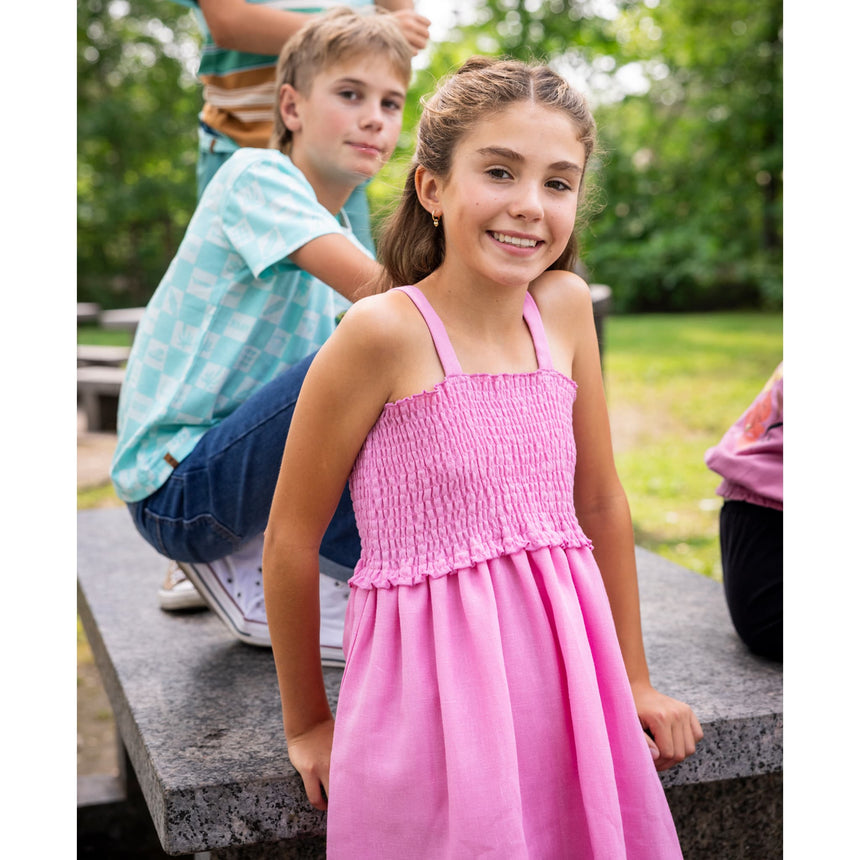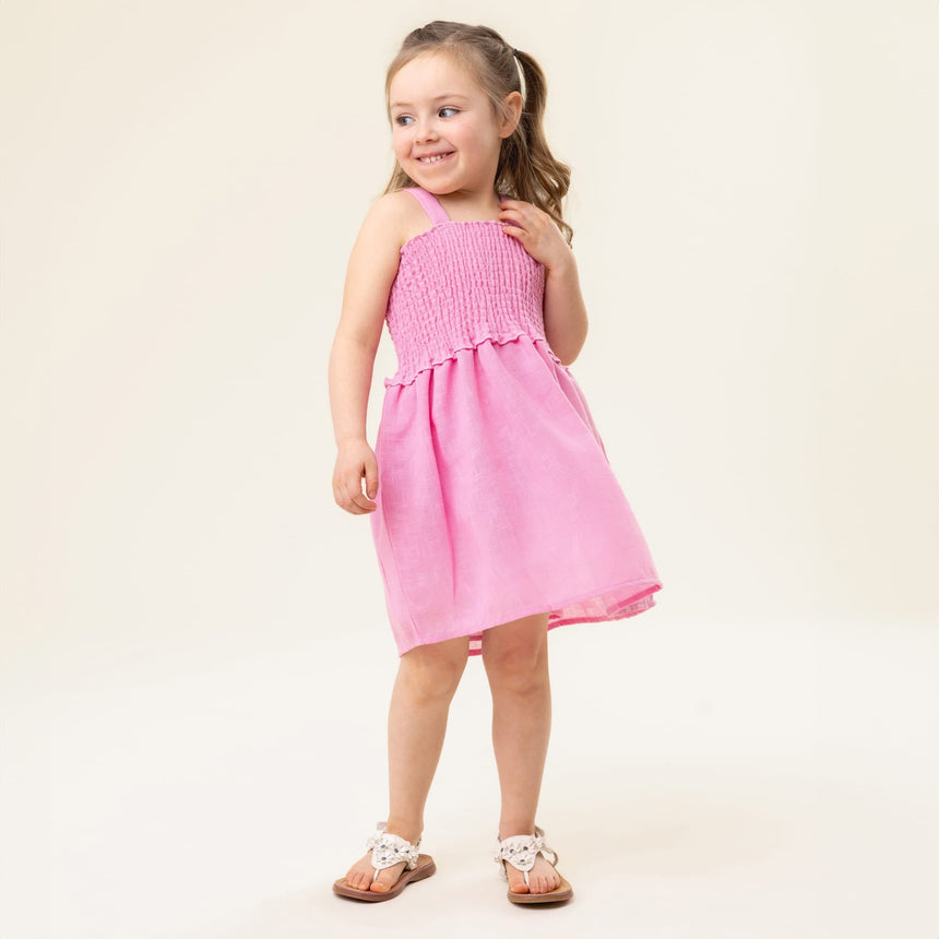-Solid woven linen-effect dress