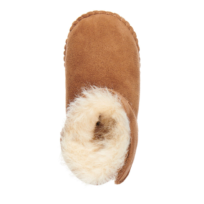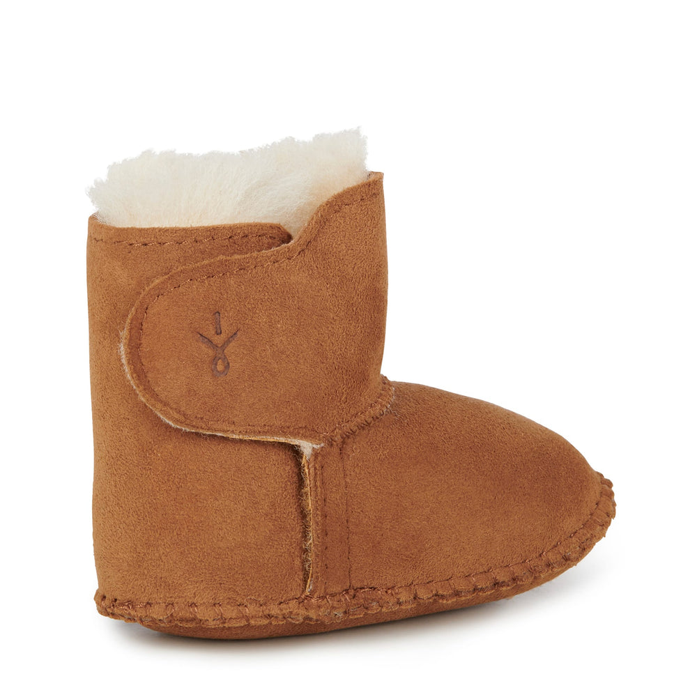 Designed for the youngest EMU Australia fan, our Baby Booties are made with fluffy double-face Australian sheepskin to keep feet warm and comfortable no matter the season. The soft sole allows developing feet to flex, refine, and strengthen while the velcro side tab provides ease when putting on and off.