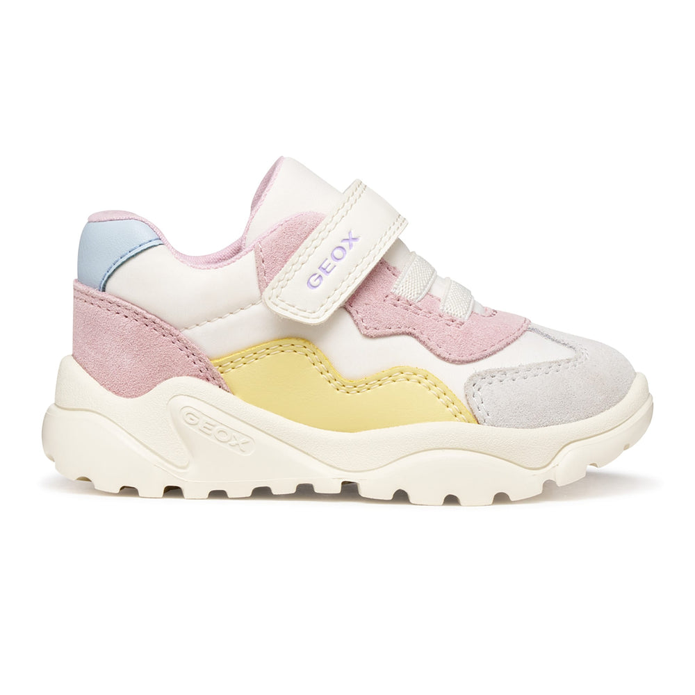 Every child can find the right shoe. GEOX offers everything you need. Thanks to its high level of expertise, GEOX knows exactly what feet require for proper development and well-being at every stage of growth. With its flexible structure and secure, reliable lacing, this little shoe is perfect for encouraging toddlers to stand up, starting from 9 months. Made of rubber, Geox’s evergreen soles are based on an exclusive Geox patent: the combination of a perforated sole and a breathable, waterproof membrane allows natural thermoregulation, creating an ideal microclimate inside the shoe to keep feet dry throughout the day.