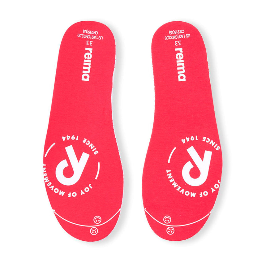 - Molded EVA removable insoles with jersey lining and Happy Fit print for fit adjustment