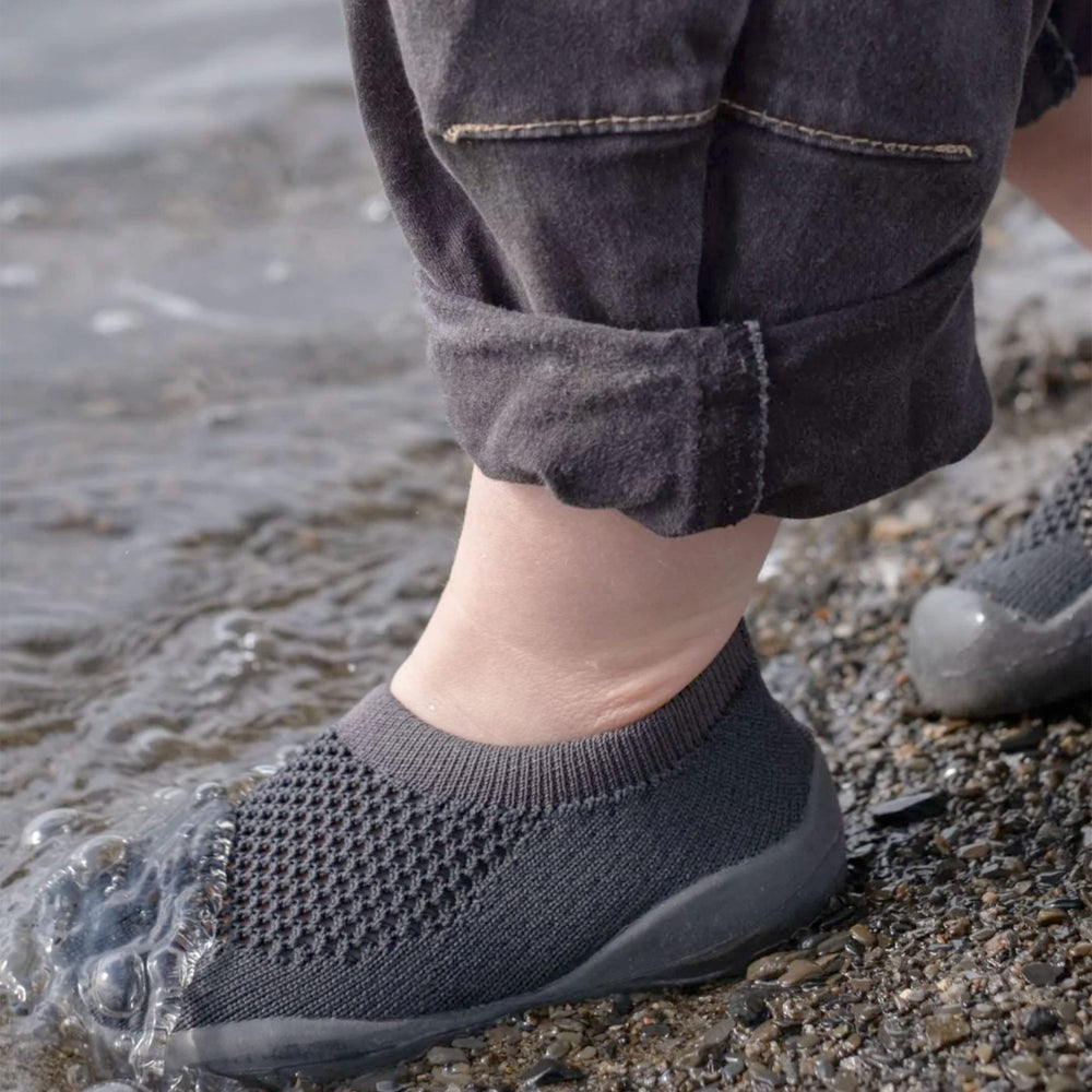 The Roamer water shoe for kids combines versatility with natural support. Its zero-drop design promotes natural alignment and balance, while the breathable 80% polyester, 20% Lycra knit upper ensures airflow to keep feet cool. The TPE rubber outsole provides slip-resistant stability on wet or uneven surfaces, and the closed-cell foam insole prevents water absorption, ensuring quick-drying and hygienic wear. With an elasticated collar for a secure fit and an ergonomic design promoting natural toe splay, plus a toe bumper for added protection, the Roamer is perfect for warm days in the park, beach, or water and machine washable for easy care.