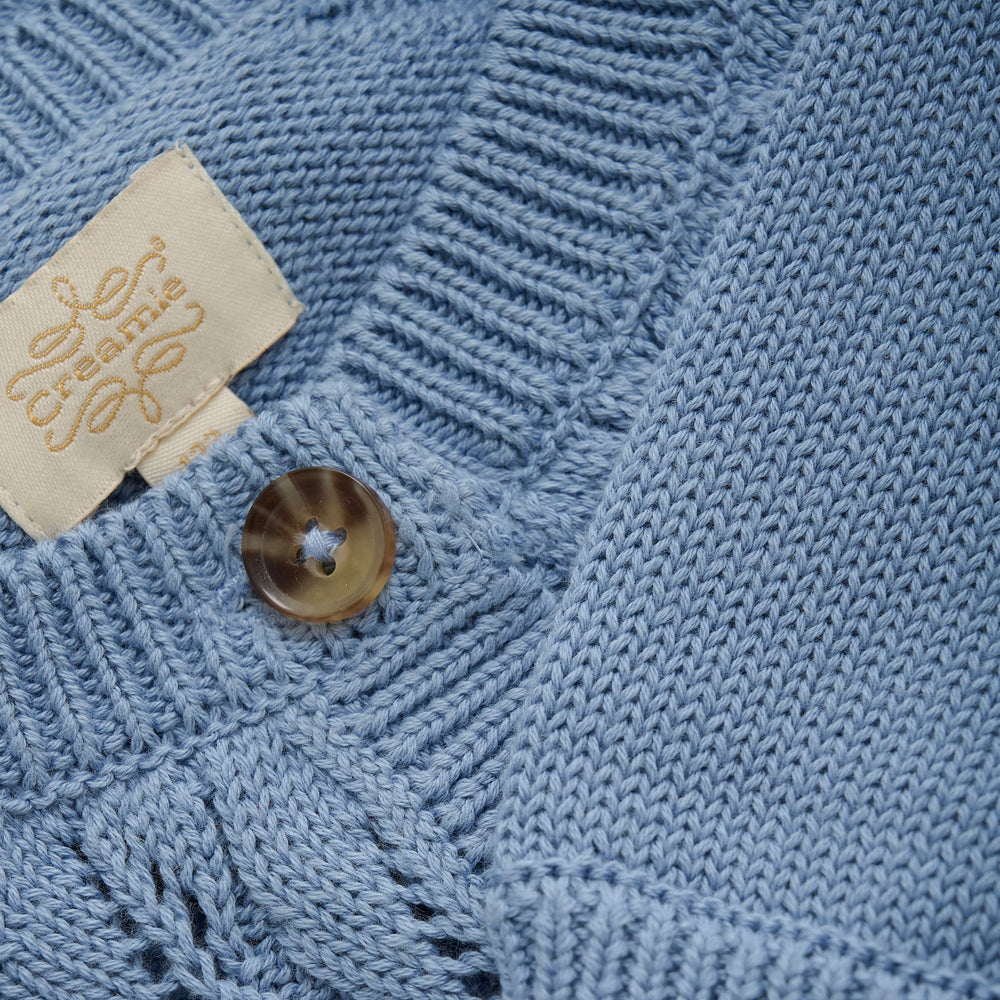 Beautiful cardigan from Creamie in 100% cotton, providing a light and airy look. The cardigan has a classic fit with buttons in the front, making it easy to put on and take off. Perfect for both everyday wear and as an extra layer on cool evenings Certified acc. to GOTS - organic CERES-0366