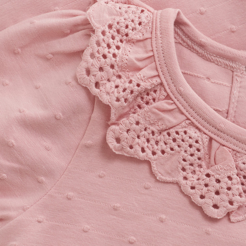 Beautiful dress made of chiffon from Creamie, featuring fine details and lurex threads that create a lovely shimmer effect. The dress has a loose fit, making it comfortable to wear for special occasions.