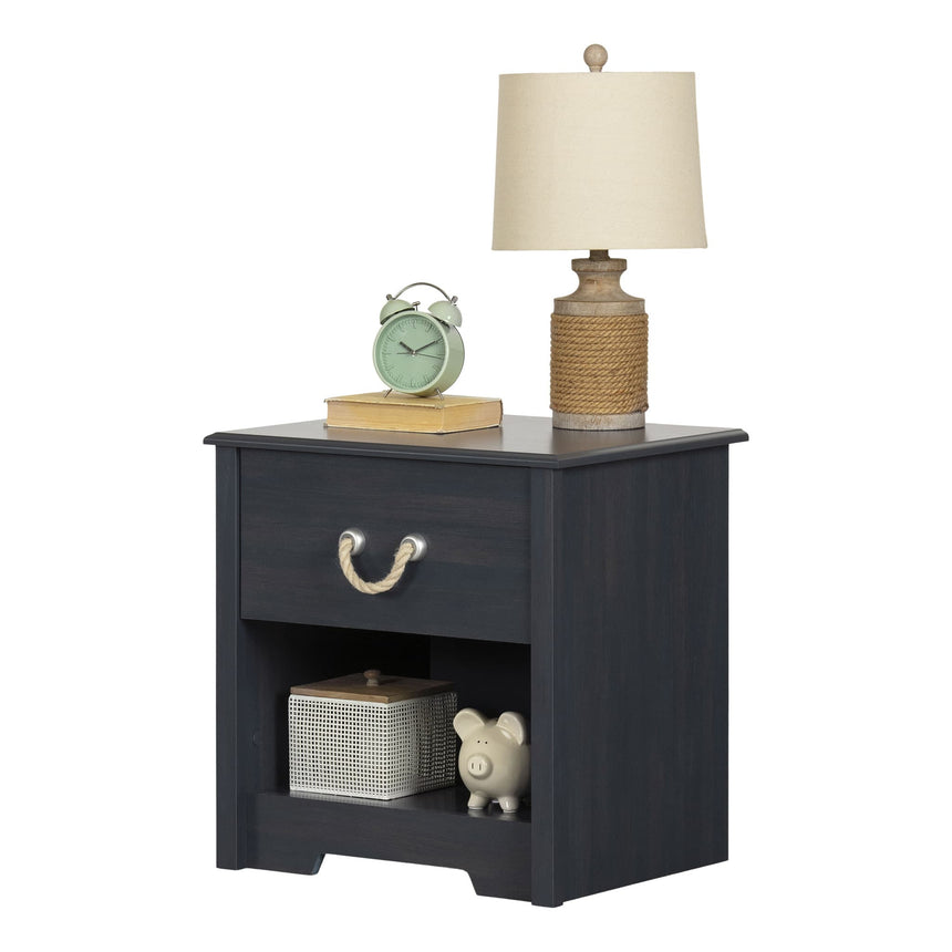 NAUTICAL CHARM: Featuring a rope drawer handle, this stylish dresser will add coastal flair to any room. STYLISH STORAGE: With 1 spacious drawer, gliding smoothly on metal slides, and open storage below, you'll stay organized and tidy with this nightstand. PERFECT FOR ANY ROOM: Whether you're looking for a small end table or nightstand in the bedroom, this charming nightstand will fit in anywhere in your home. 5-YEAR LIMITED GUARANTEE: South Shore is proud to stand behind this 1-drawer nightstand - end table with storage with an exclusive 5-year limited guarantee. Shop with confidence knowing your purchase is always covered. EASY ASSEMBLY INSTRUCTIONS: All products come with a clear assembly document that will guide you through all steps. If you have any questions during the assembly do not hesitate to contact South Shore Furniture for immediate support. This item is shipped in 1 box, make sure to have a friend with you