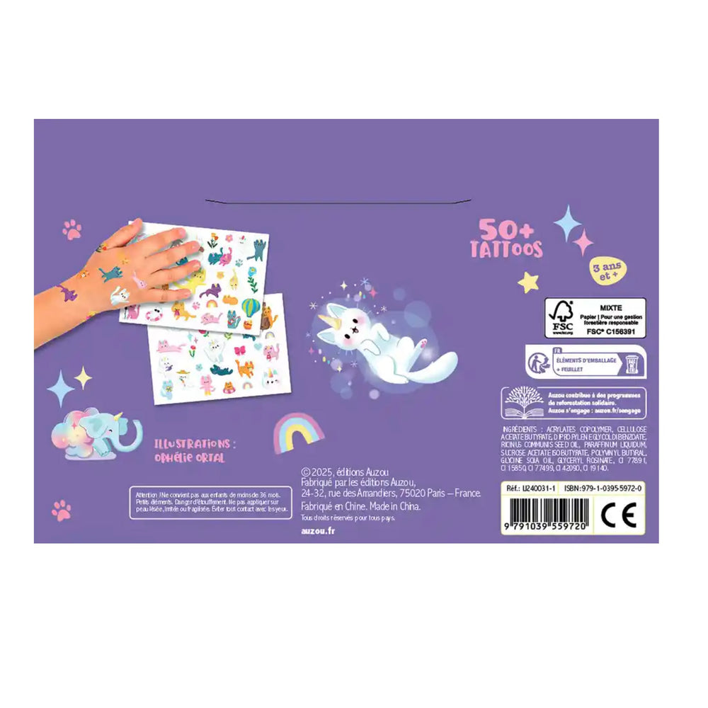 A pouch with over 50 Akiko the Unicorn Cat tattoos! In this handy little pouch, kids can discover over 50 tattoos featuring Akiko the Unicorn Cat: super cute cats, pretty flowers, kawaii designs... there's something for everyone!