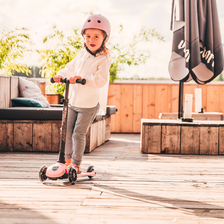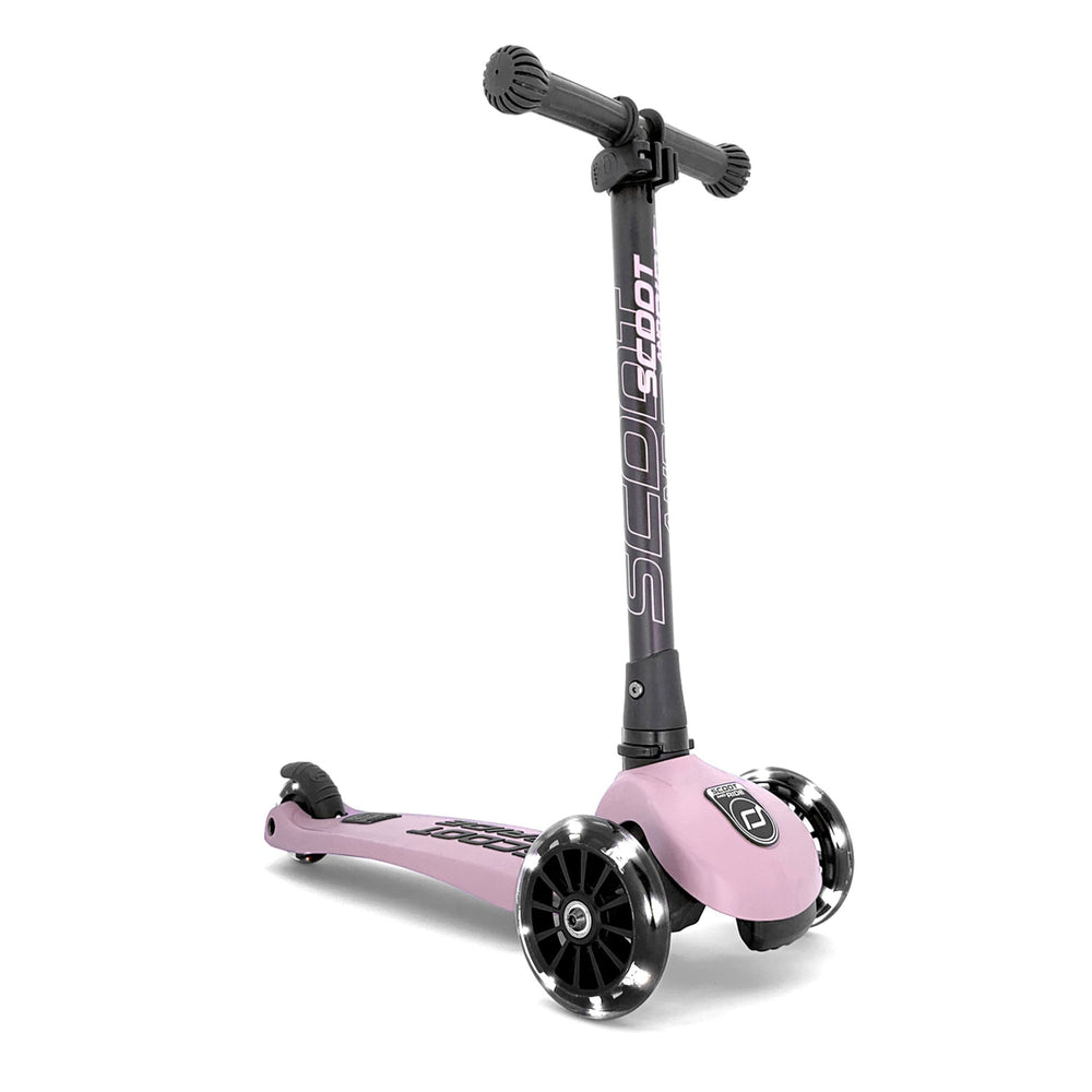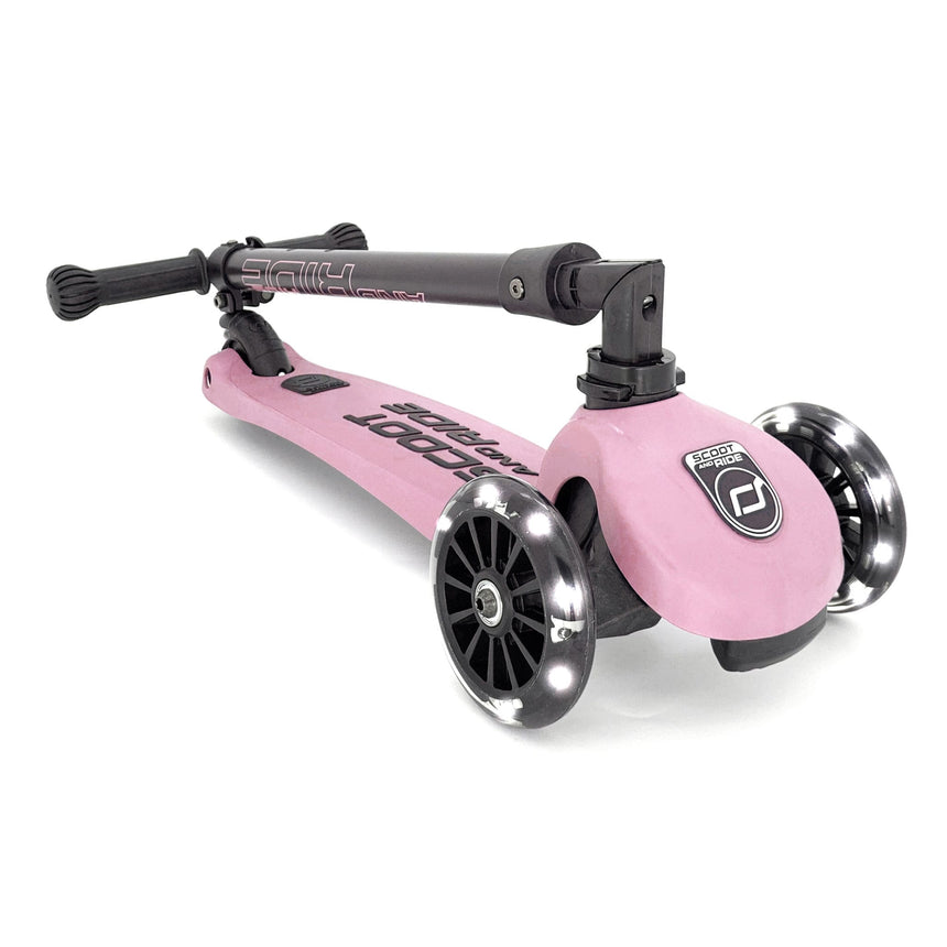 The Highwaykick 3 features 3 LED wheels and a three-height adjustable handlebar that folds easily for convenient transport (no tools required).