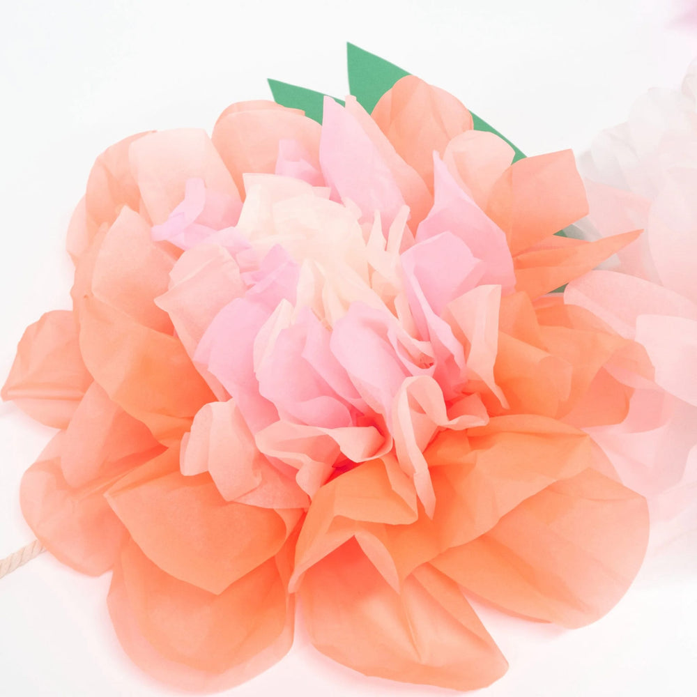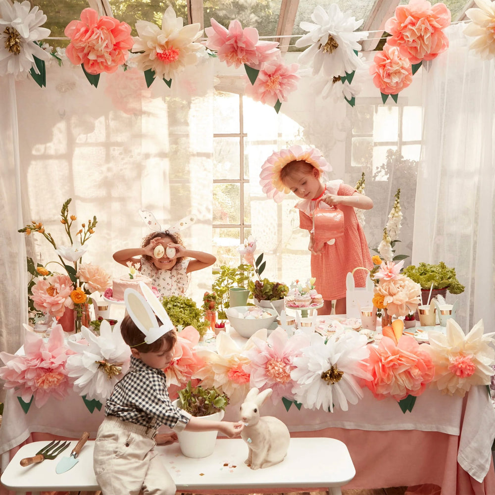 This fabulous flower garland will add beauty to any celebratory setting, or as a gorgeous decoration in your home. Crafted from tissue paper, with gold foil detail, and strung on a natural cord. The garland comes packed flat and is easy to assemble.