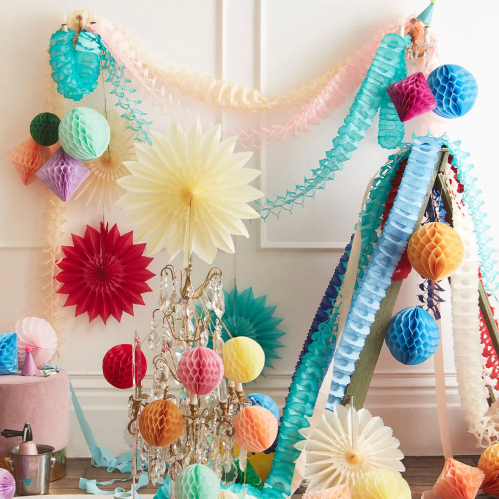 This gorgeous garland is an easy and effective way to add style and color to your party decorations. It's crafted from tissue paper for a honeycomb effect.