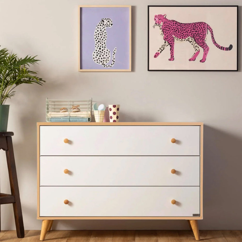 Whether dueting with the Austin 3-in-1 Convertible Crib, or shining solo, the Austin 3-drawer Dresser is a storage showstopper with undeniable style. This high-quality dresser is reinforced with forged steel for reliable durability, crafted with baby-safe finishes, and built to last through babyhood, childhood, and for years to come. With deep drawers and anti-tip hardware included, the Austin keeps baby’s first belongings organized and secure, so you can focus on celebrating every precious moment.
