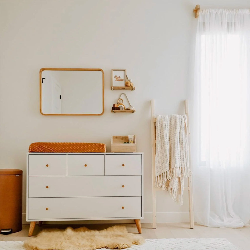 Whether dueting with the Austin 3-in-1 Convertible Crib, or shining solo, the Austin 5-drawer Dresser is a storage showstopper with undeniable style. This high-quality dresser is reinforced with forged steel for reliable durability, crafted with baby-safe finishes, and built to last through babyhood, childhood, and for years to come. With deep drawers and anti-tip hardware included, the Austin keeps baby’s first belongings organized and secure, so you can focus on celebrating every precious moment.