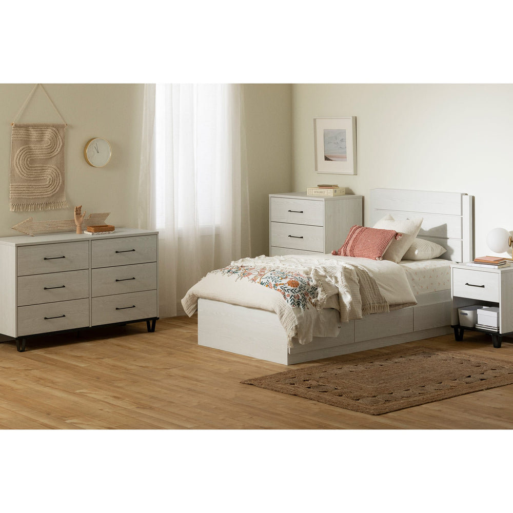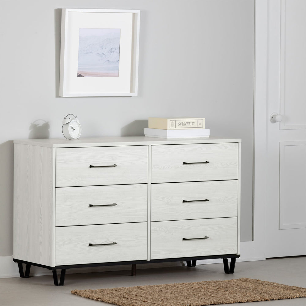 This Farmhouse style dresser is sure to add a touch of charm to your kid's bedroom! We particularly like the metal accents, such as hairpin legs and slim handles, which give it a more refined, original look. The slightly vintage and rustic overall look will add a warmer, more natural touch to your decor. This trendy piece of furniture will grow with your child until he or she is past adolescence!