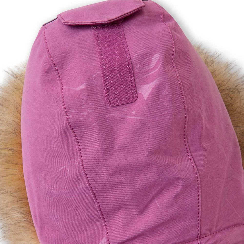 Our Reimatec+ toddler winter suit has many fabulous features: all seams are waterproof and it has a water- and dirt-repellent surface. The insulation is made of 60% down and 40% feathers, and the seat has extra padding for extra warmth. The smooth lining makes dressing squirmy little ones easier, and the detachable hood is safe because it easily detaches if it gets caught on something. A small zippered pocket keeps little treasures safe. Durable silicone foot loops keep trouser hems in place, protecting little ankles from wet and cold. This easy-to-dry winter jumpsuit is a great choice for crawling in the country or strolling around town!