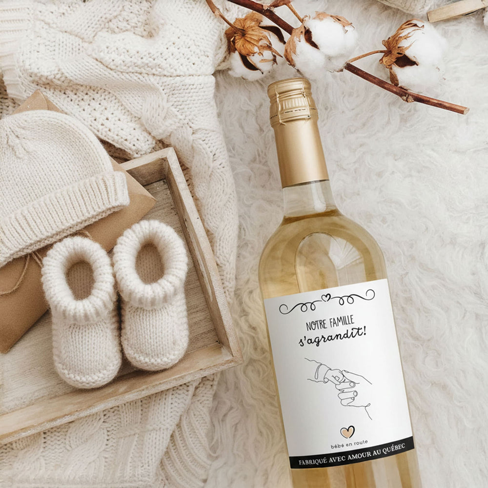Transform any wine bottle or beer can into a heartfelt moment with this set of announcement labels (includes 2 identical labels). Perfect for sharing big news, pregnancy announcement, godparent proposal, or a special surprise for family and friends, these labels add a warm and memorable touch to your presentation.