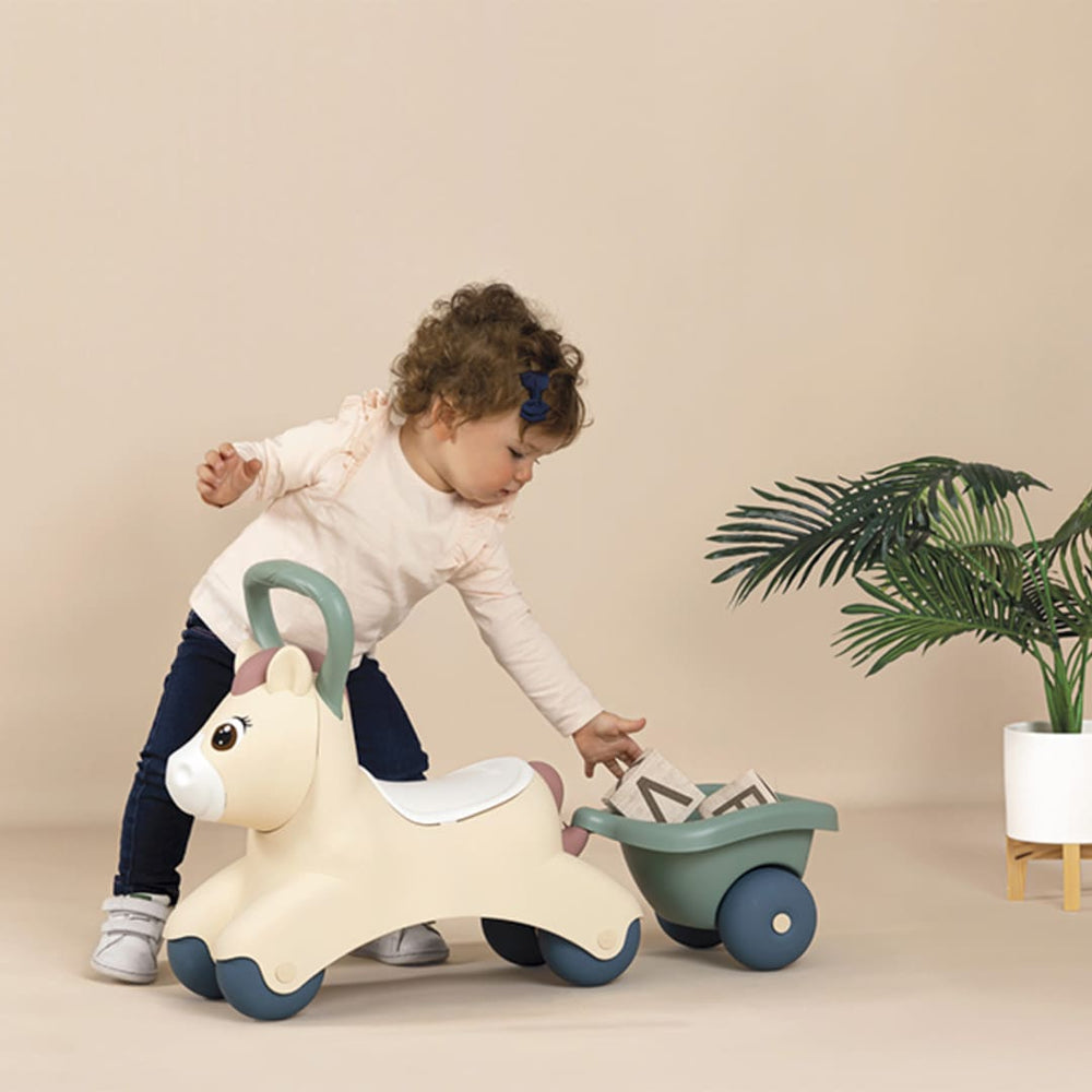With the Little Smoby Baby Pony Carrier your little one will be able to explore the house easily and safely! He will also be able to carry all his discoveries or toys in the included trailer. Easy to hold with its ergonomic handle, this walker will allow your child to develop motor skills while having fun.