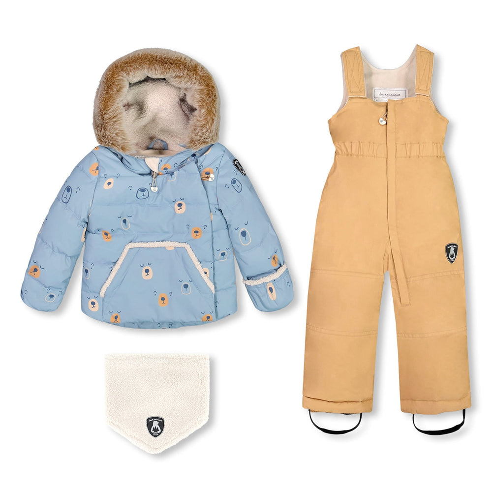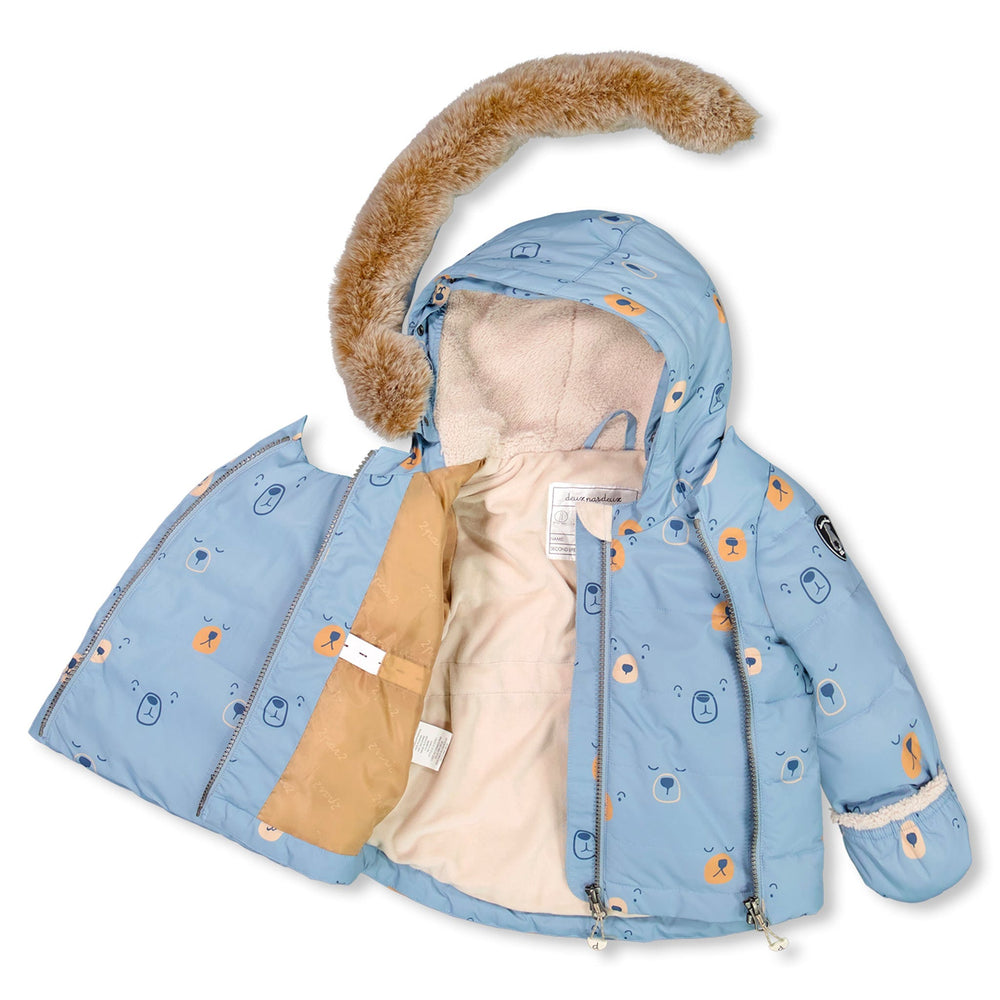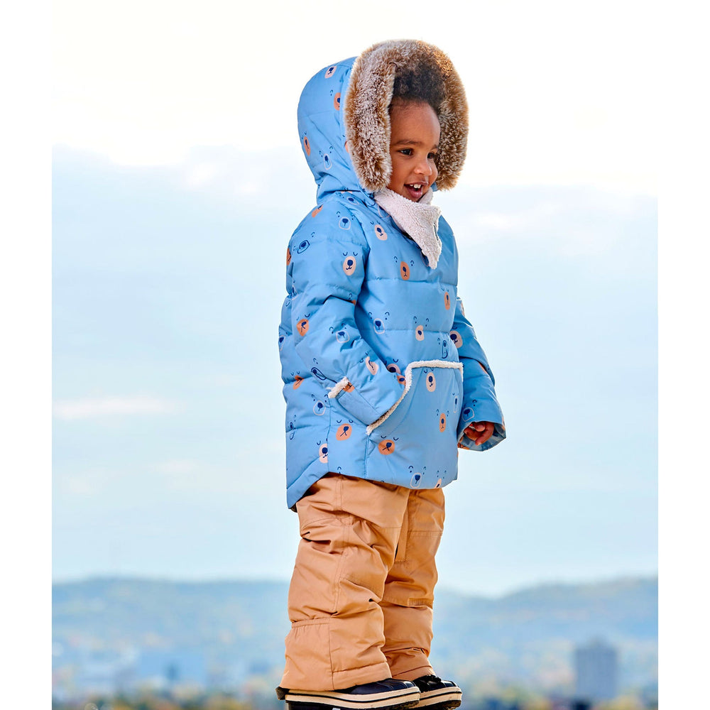 Protect little ones from wet, snowy, and frigid weather with our Two Piece Baby Snowsuit Rose Printed Mini Flowers. Featuring an allover print jacket and solid high-waisted overalls, this set is loaded with stylish and functional details to help keep little ones safe in the cold. Designed for wearing in temperatures as low as -30° C (or -22° F), this set is insulated, lined with plush velvet, sherpa, and fleece fabrics, and detailed with adjustable straps, an adjustable waist, and removable faux fur trim around the hood.