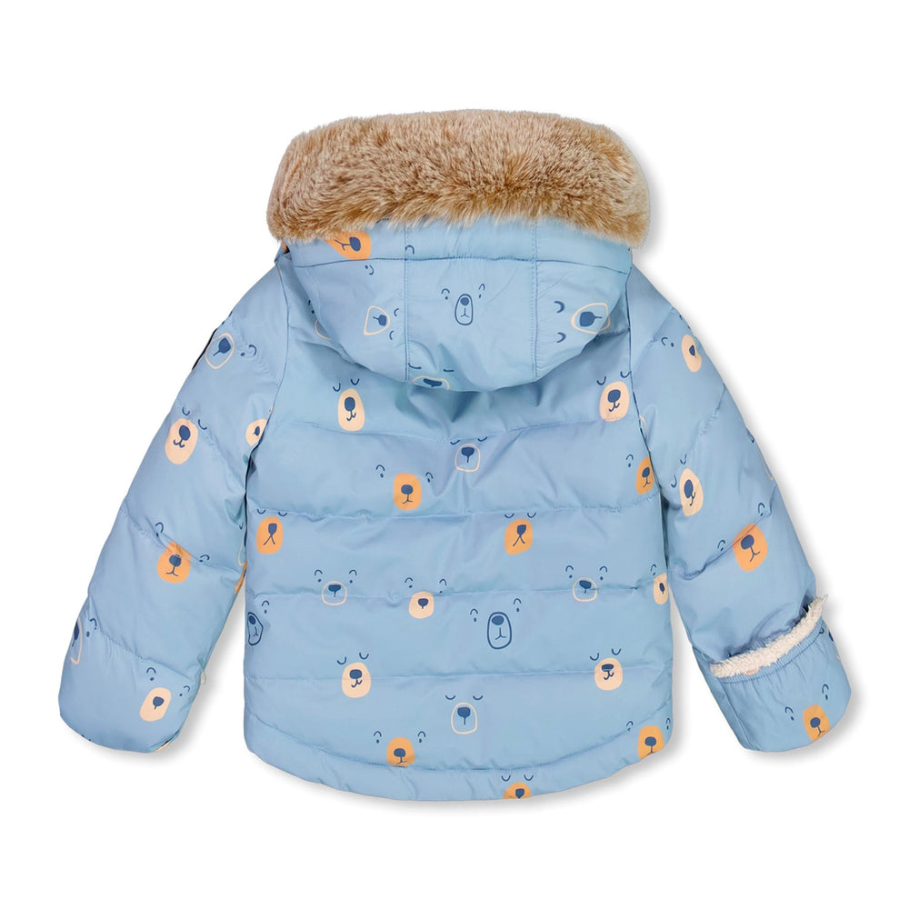 -Removable synthetic fur-trimmed hood with hood snow skirt