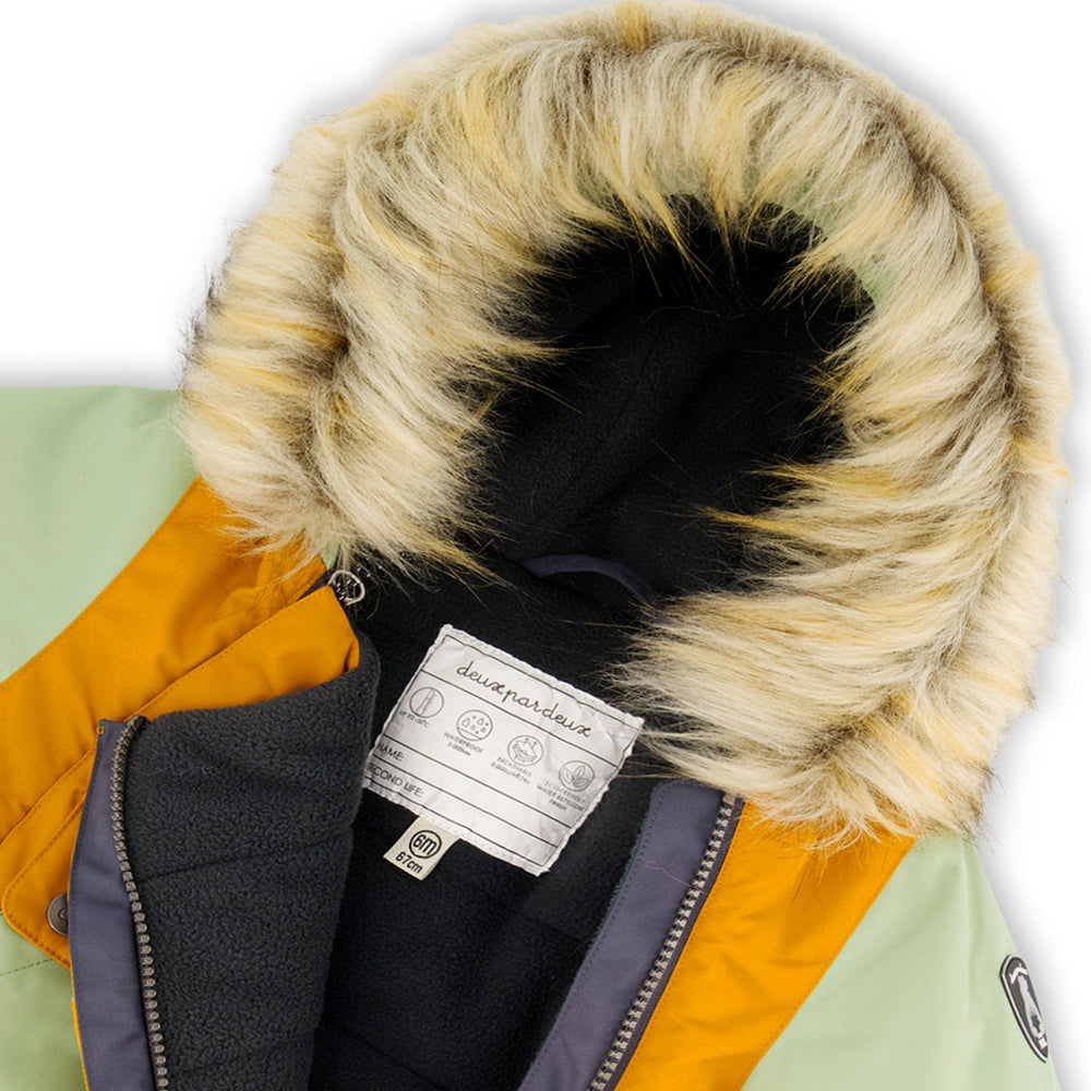 -Removable synthetic fur-trimmed hood with hood snow skirt