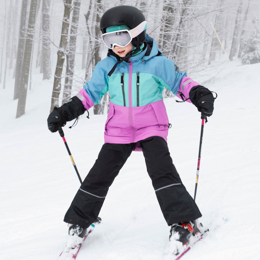 This two-piece TEKNIK ski suit offers superior function, incredible range of motion, and every technical detail kids need to stay safe, warm, and dry on the mountain. Waterproof, breathable, and filled with thin PrimaLoft insulation for warmth in temperatures as low as -30°C (-22°F), this snowsuit features a rainbow gradient print jacket with a detachable helmet-friendly hood, articulated sleeves with extendable length, a fleece lining for added warmth, and taped seams at all critical areas. The coordinating pants are constructed with articulated knees, functional pockets with waterproof zippers, adjustable hems, and an adjustable waistband with removable suspender straps.