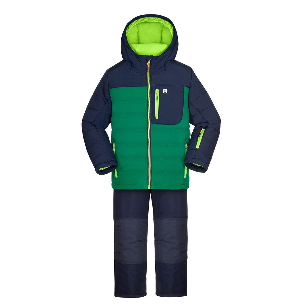 Stay warm and cozy with the Cooper boys snowsuit! With its snowskirt and reinforced seat and knees, this is the perfect choice for a day of fun in the snow. Whether your kiddo is snowshoeing over the weekend or fighting for the title of "King of the Mountain" in the school yard, this snowsuit will keep them dry and warm no matter what challenge winter throws at them!