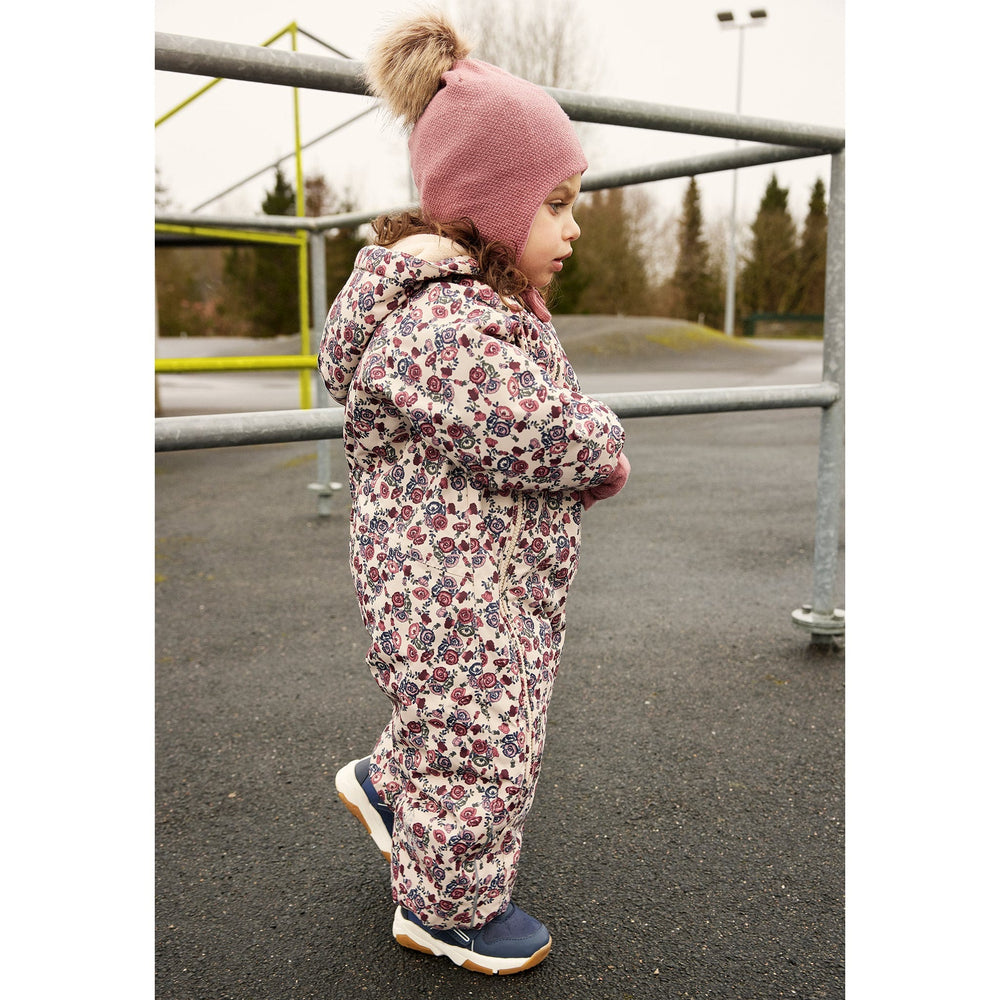 Warm snow suit with all over print from Minymo.The suit is made of 100% polyester with fleece lining on the inside. The suit has many features such as a detachable hood as well as detachable fake fur and detachable rubber straps at the feet. Soft elastic at both wrists and ankles to ensure a good fitting. The suit has reflex details to make sure that the child always can be seen when playing outside. Closes with two zippers that go all the way down on both sides. The suit is breathable and water resistant with a water column pressure of 10,000 mm as well as abrasion resistant. Impregnated with BIONIC FINISH ECO. Certified acc. to GRS- Made with 57% Recycled Material CERES-0366
