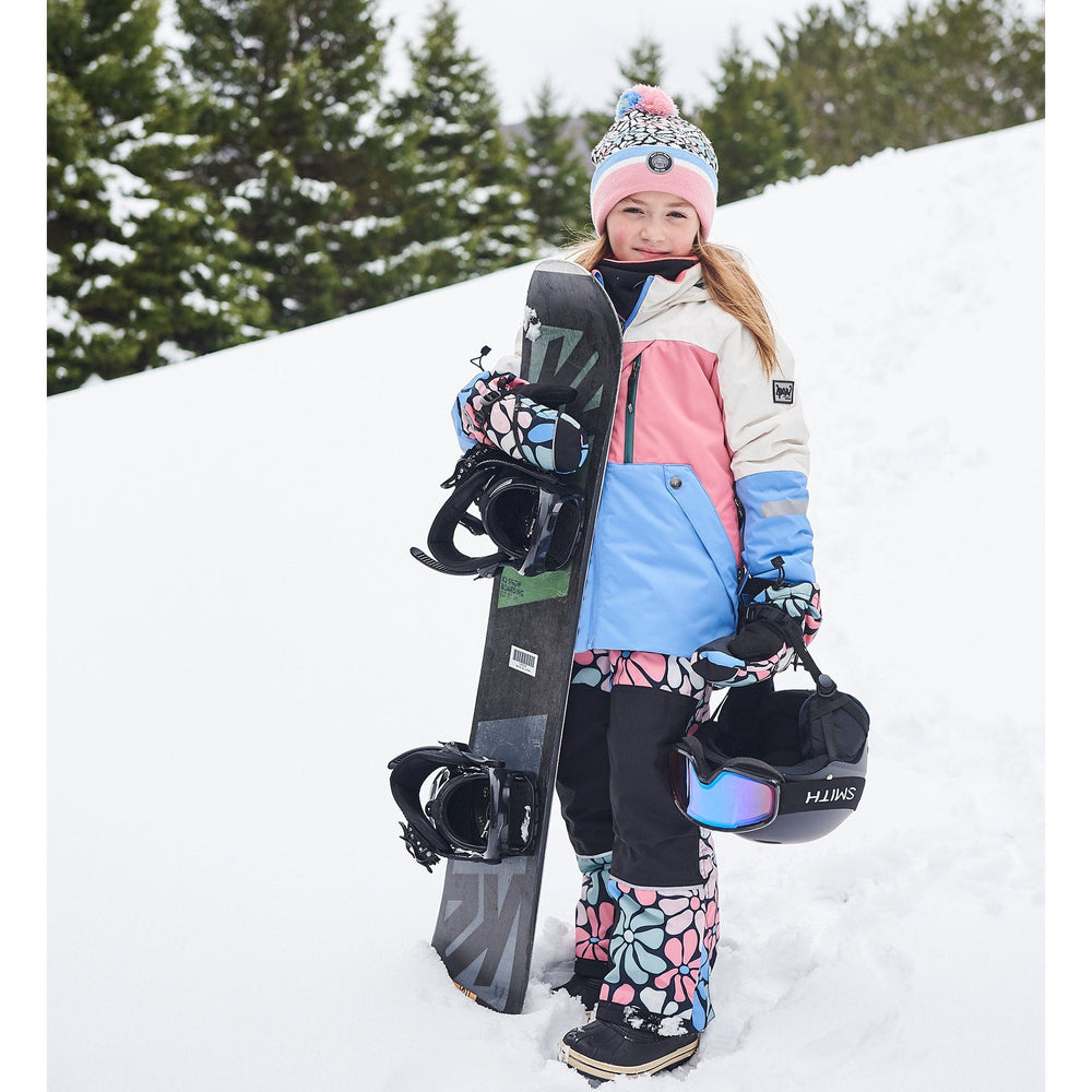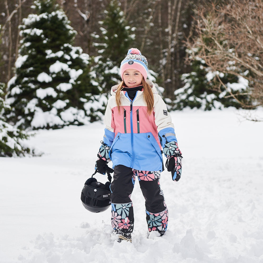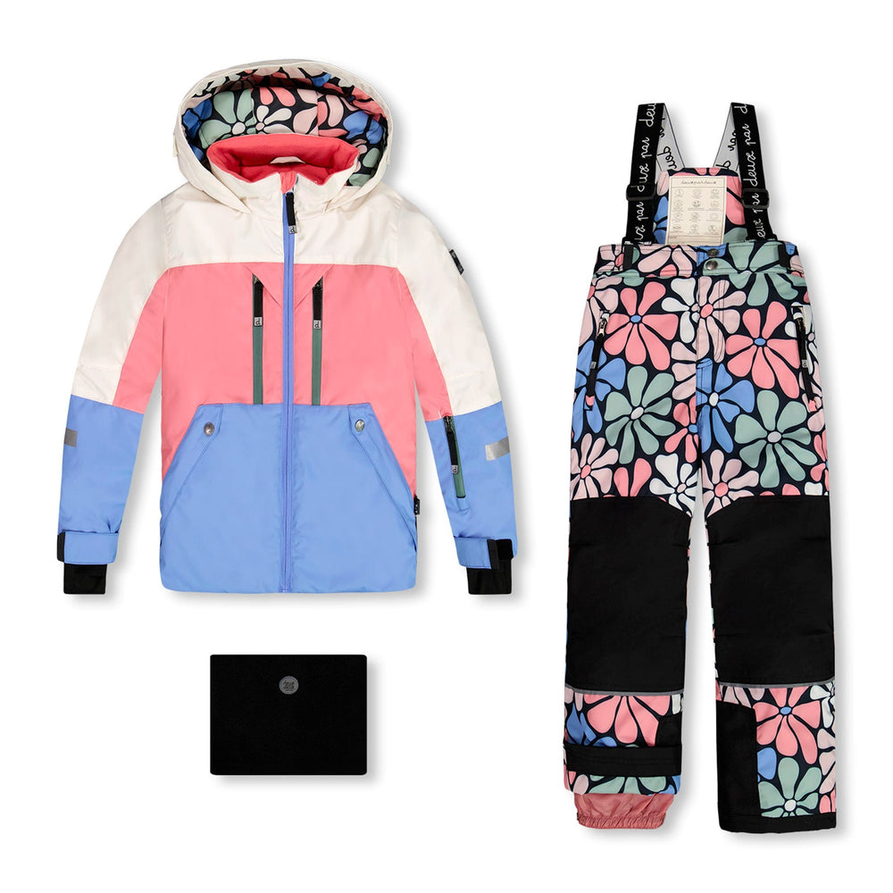 Our Two Piece Technical Snowsuit Colorblock Printed Retro Flowers offers ultimate style and function for a day on the mountain. Made with PrimaLoft® insulation and eco-friendly REPREVE® fabric, this performance snowsuit features a fleece-lined coat with a hood that's large enough to fit over a ski helmet, articulated sleeves and knees for better range of motion, waterproof zippers, and sealed seams at critical points. The pant is detailed with adjustable hems, ankle snow guards, an adjustable waist, and removable logo straps.