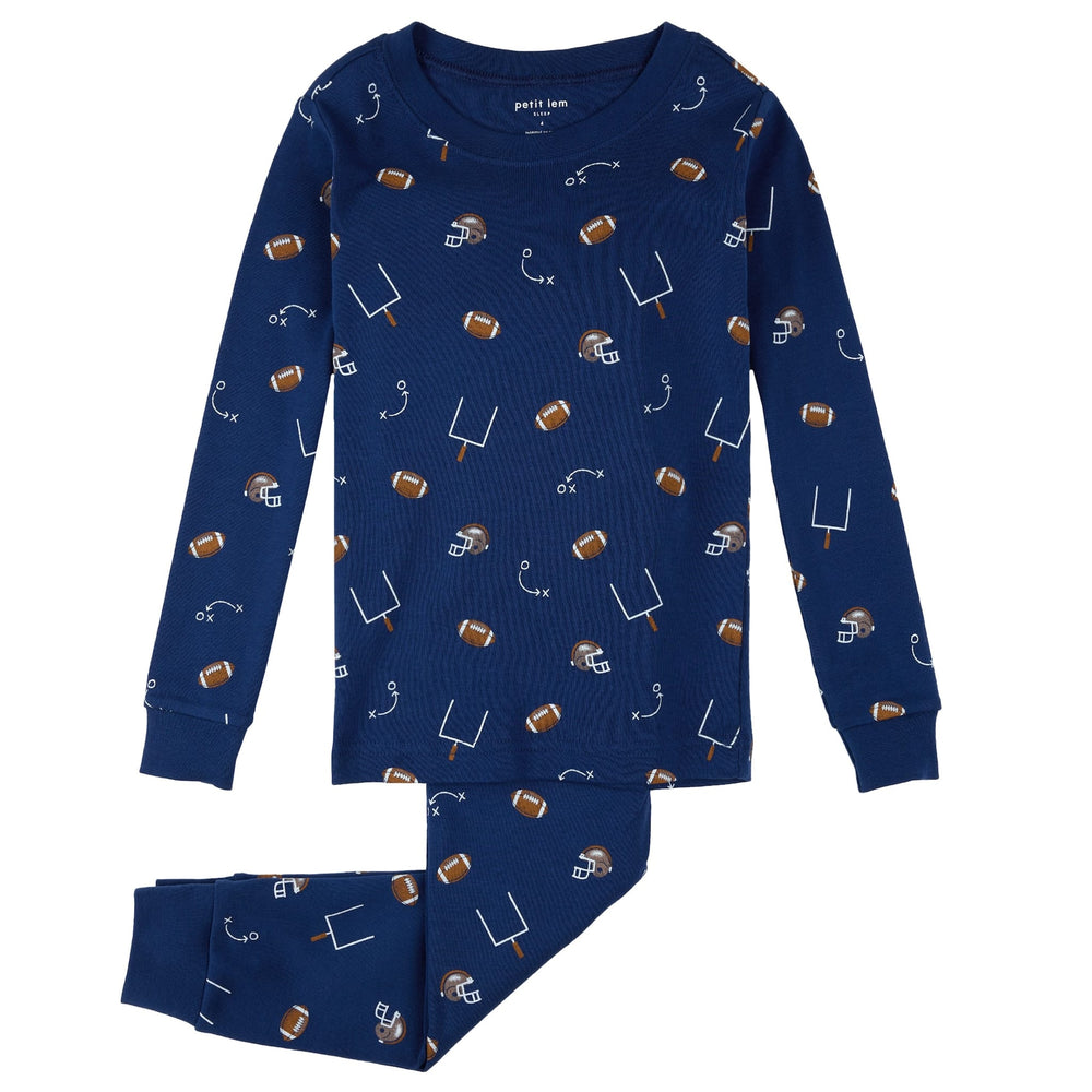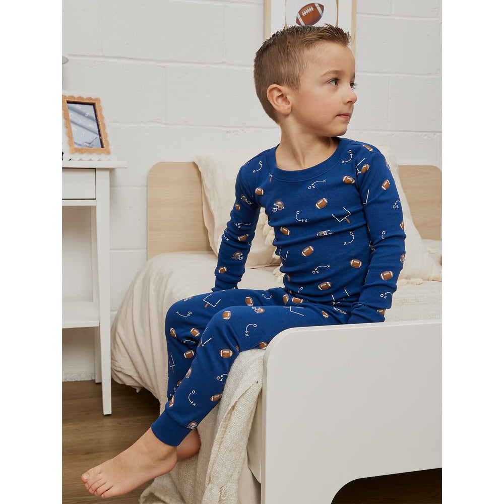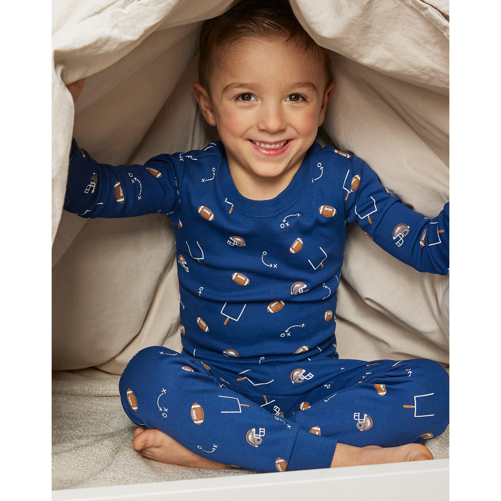 Help them to touchdown in dreamland with this playful PJ set with Football Play print. The soft, breathable set is made from organically grown cotton rib and finished with ribbed cuffs and ankles for comfort and easy movement. Matching sleepers are available for little siblings so they can watch the big game together in total coordination.
