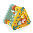 Multi-activity and vibrant triangle! This early learning toy promises many new discoveries for baby. With 7 activities: Maze, mirror, gears to turn, nuts to screw, abacus, rain stick and cylinders to align, this wooden toy is ideal for children from 12 months. Compact, this comprehensive toy is easy to carry around and for the child to handle. Children from the age of 1 will be able to develop their fine motor skills, their coordination and become familiar with colours and shapes! With a multitude of activities on each side, baby will always be discovering new things! This wooden early years toy is made from water-based paint and wood from sustainably managed, FSC®-certified forests.