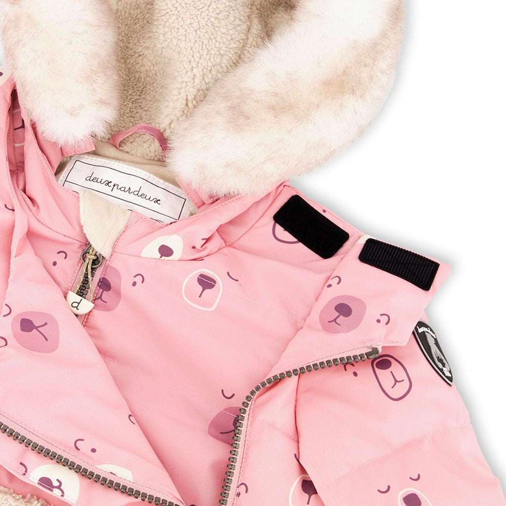 Protect little ones from wet, snowy, and frigid weather with our Two Piece Baby Snowsuit Rose Printed Mini Flowers. Featuring an allover print jacket and solid high-waisted overalls, this set is loaded with stylish and functional details to help keep little ones safe in the cold. Designed for wearing in temperatures as low as -30° C (or -22° F), this set is insulated, lined with plush velvet, sherpa, and fleece fabrics, and detailed with adjustable straps, an adjustable waist, and removable faux fur trim around the hood.