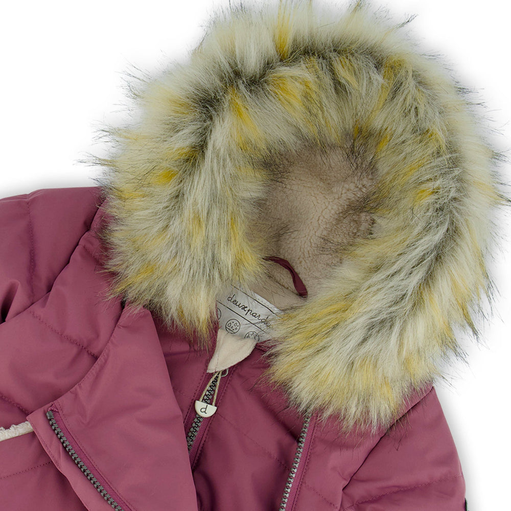 -Removable synthetic fur-trimmed hood with hood snow skirt