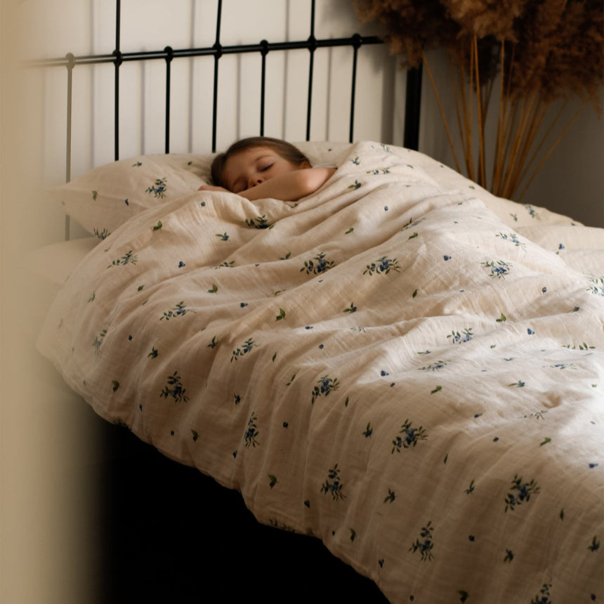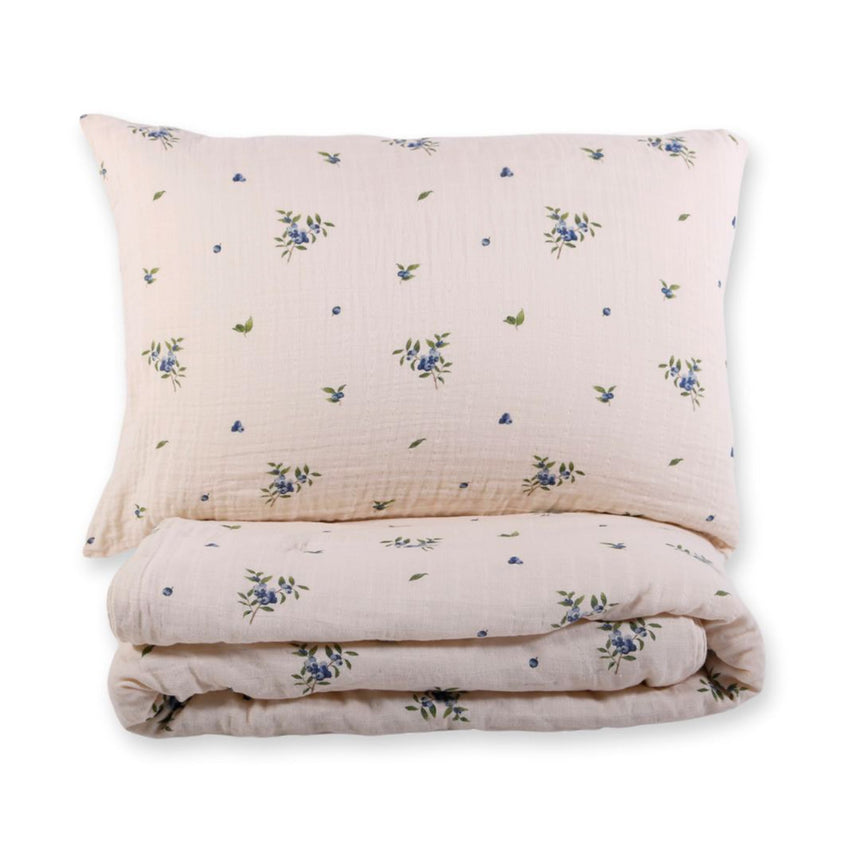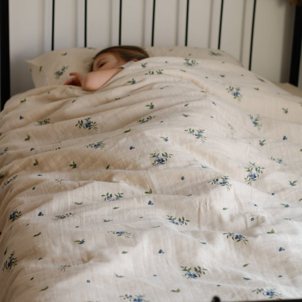 Quilted Comforter & Pillowcase - Muslin Blueberry