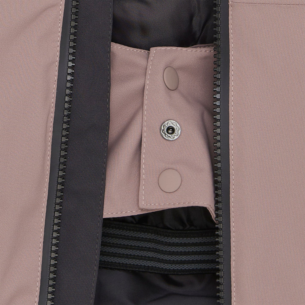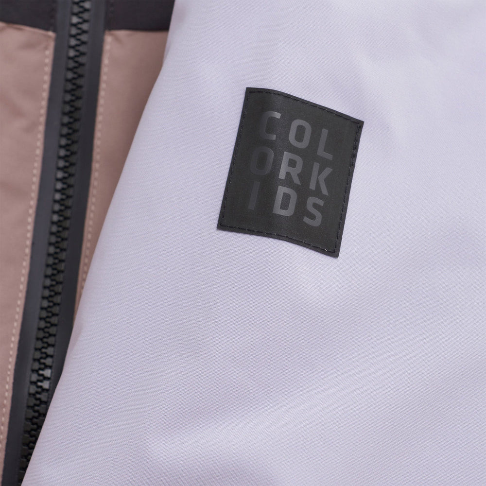 Warm ski jacket for girls in durable material. The material is breathable, windproof and waterproof, so your child can be out in rain, snow and wind without getting cold and wet. Tested wear resistance of 60,000 rubs, water column pressure of 15,000 mm. and breathability of 8,000g. The jacket closes with a quality zip at the front and has two cheast pockets and two front pockets. The chin guard ensures that the zipper does not get in the way under the chin. The jacket has a fixed hood that can be adjusted with a velcor strap on the back of the hood and external zippered pockets. Reflective details on the back of the jacket and on the sleeve. Other practical features such as inner cuffs with space for the thumb and adjustable outer cuffs which can be closed tightly. Pocket for lift card in left sleeve and inside. There is a name tag inside. The ski jacket is made from recycled material. Coated with BIONIC FINISH® ECO Certified acc. to GRS - Made with 60% Recycled Material CERES-0366. Color Kids is a Danish outerwear brand that is inspired by our nature. Color Kids aims to be a sustainable brand. Over 70% of Color Kids products are made from recycled fabrics made from plastic bottles.