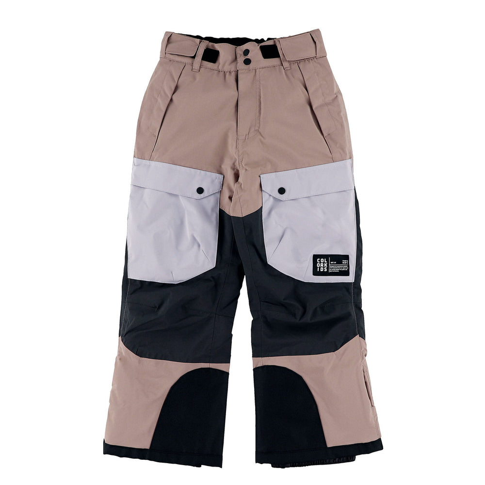Warm ski pants for your child in durable material with color block design. The material is breathable, windproof and waterproof, so your child can be out in rain, snow and wind without getting cold and wet. Tested wear resistance of >60,000 rubs, water column pressure of 15,000 mm. and breathability 8,000. The trousers have two pockets on the sides and two pockets on the front. They have snow guards in the leg openings that keep the snow out. Closes with a zip and snap button at the front and has an adjustable waistband with elastic. Reflective details front and back. On the inside there is a practical name tag for the child's name. The ski pants are made of recycled material. coated with BIONIC FINISH® ECO. Certified acc. to GRS - Made with 53% Recycled Material CERES-0366. Color Kids is a Danish outerwear brand that is inspired by our nature. Color Kids aims to be a sustainable brand. Over 70% of Color Kids products are made from recycled fabrics made from plastic bottles.
