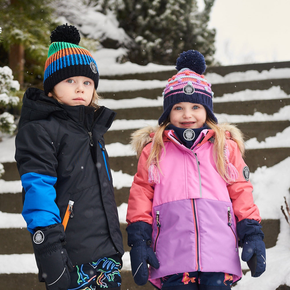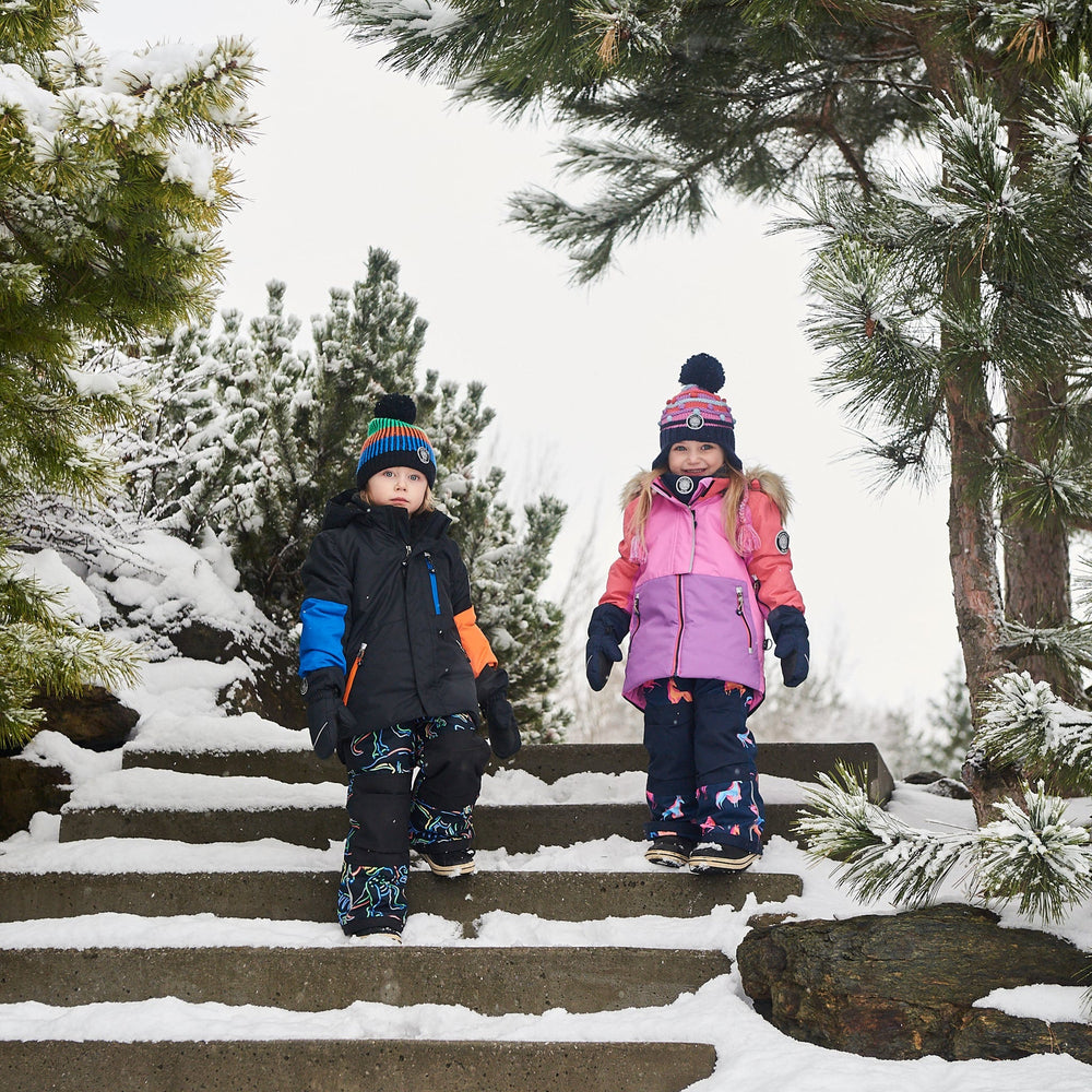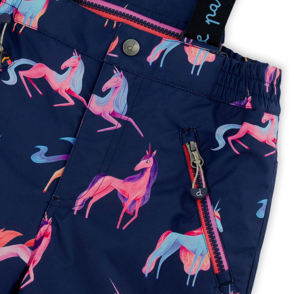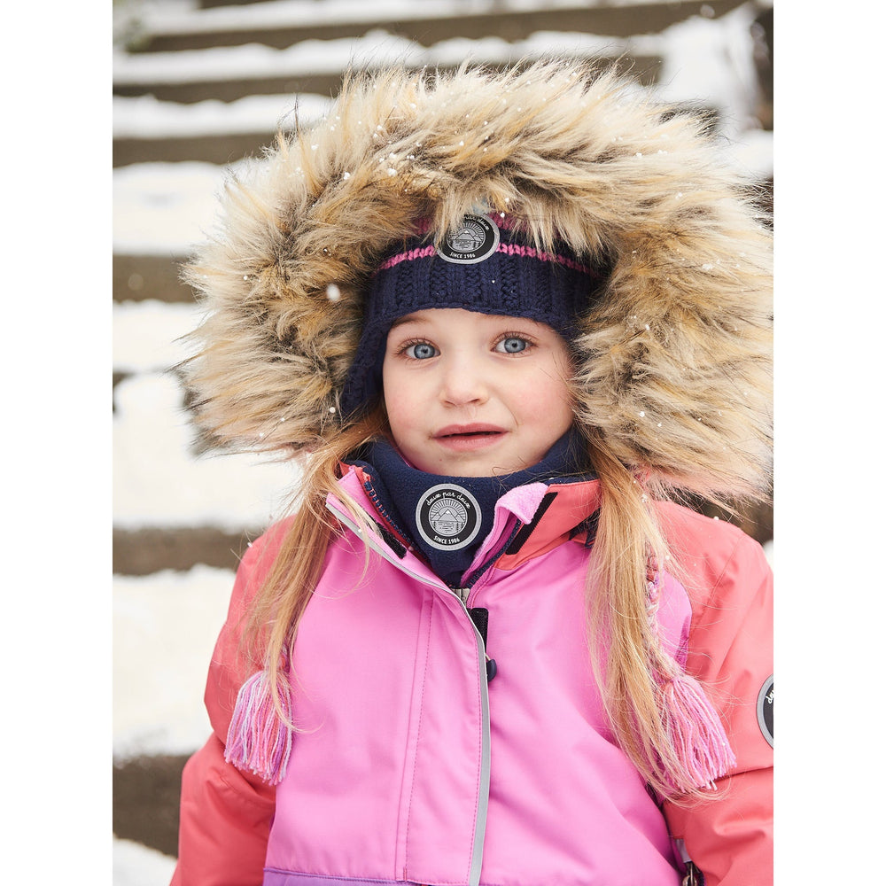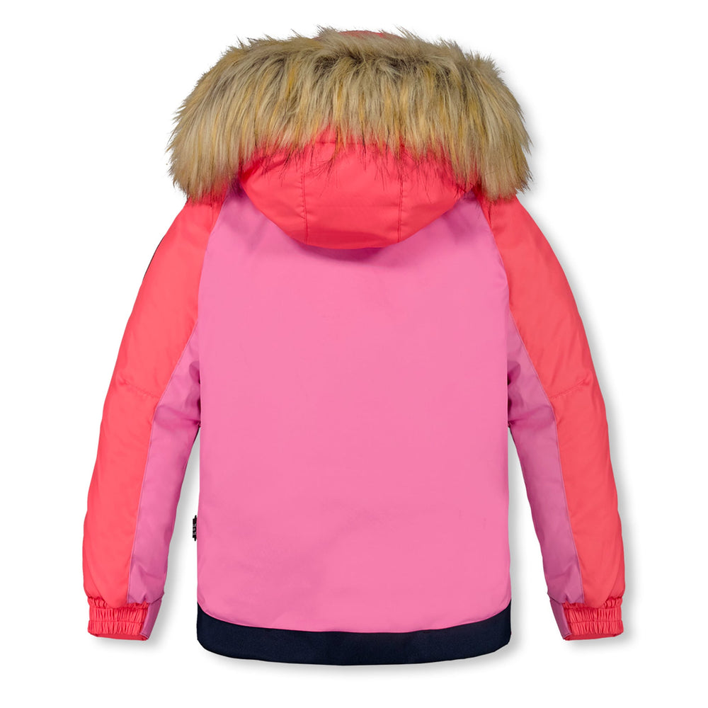 With a colorblocked jacket and an allover unicorn print pant, our Two Piece Snowsuit Colorblock Purple and Coral with Printed Unicorns is perfect for the girl who loves spending time in the snow! Insulated and coated for weather resistance, the coat features a cozy fleece lining, evolutive sleeves, a zip front closure with a wind stopper placket, and a detachable hood with faux fur trim. The pant is detailed with adjustable, removable logo straps, reinforced panels at the knees, seat, and hem, and reflective accents for increased visibility. A coordinating neckwarmer is included for added warmth!