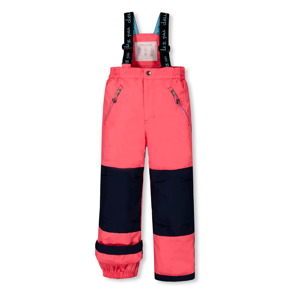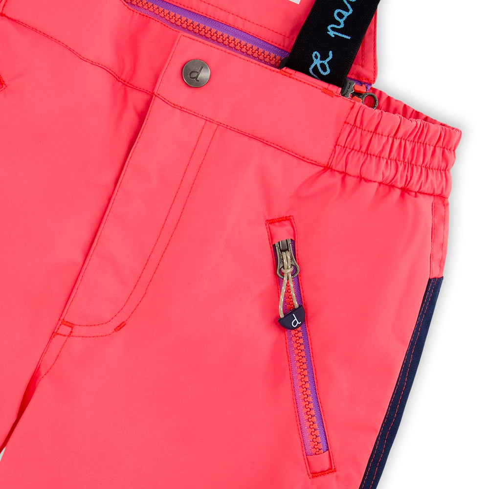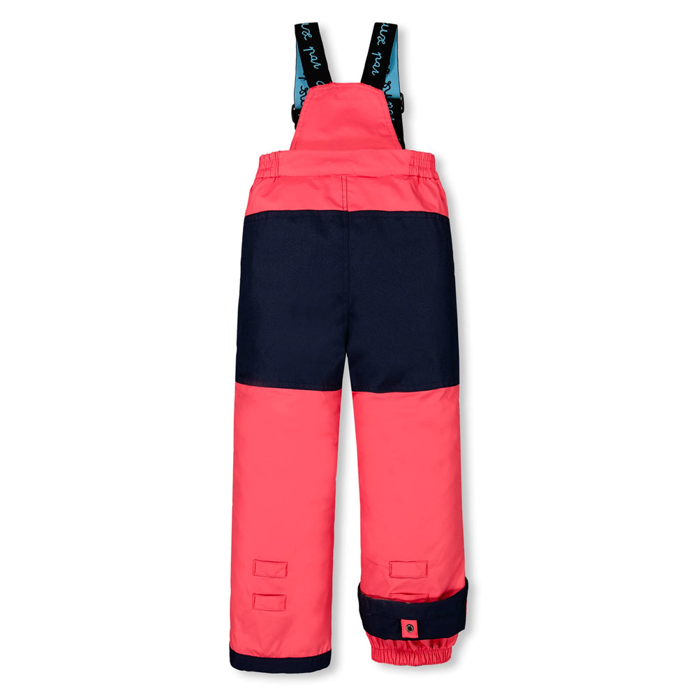 -Elastic waist pants with removable and adjustable suspenders. Includes two zippered pockets on each side. Ankles equipped with a snow skirt and rubberized elastic band