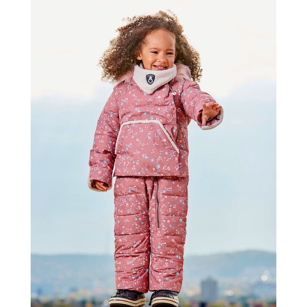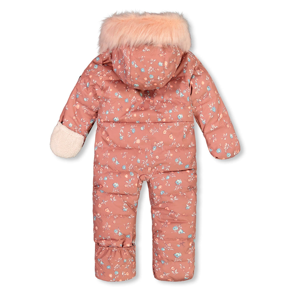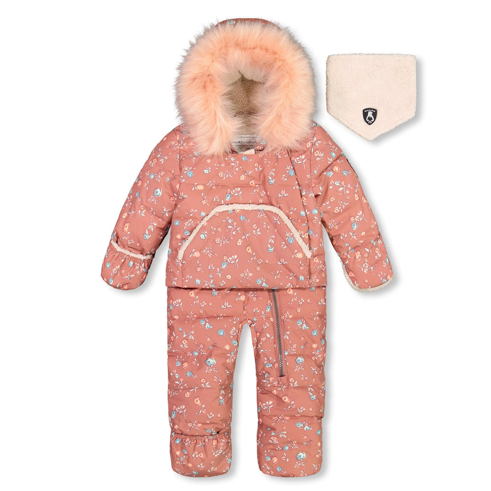 Insulated to keep little ones warm in temperatures as low as -30° C (22° F), our One Piece Baby Hooded Snowsuit Sage Printed Racoons Designed for Car Seat is a perfect choice on a frigid day! This plush-lined suit is detailed with a cozy sherpa-lined hood with removable faux fur trim, an asymmetrical zipper closure, and sherpa-lined flip over hands and feet for added warmth. The construction of the top allows for easy and safe attachment to car seat harness straps. A coordinating neckwarmer is included!