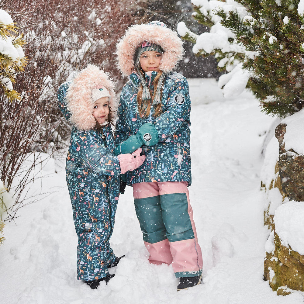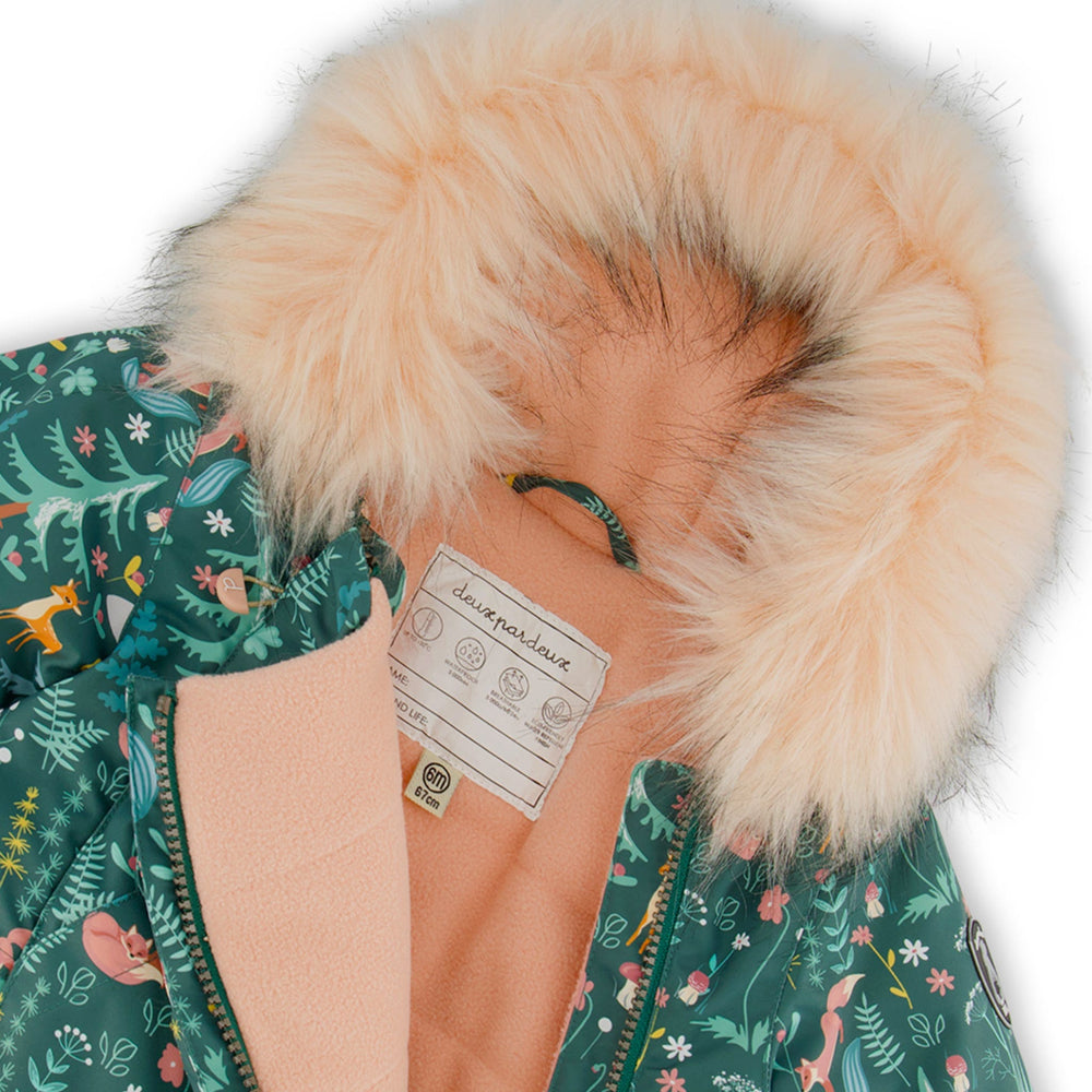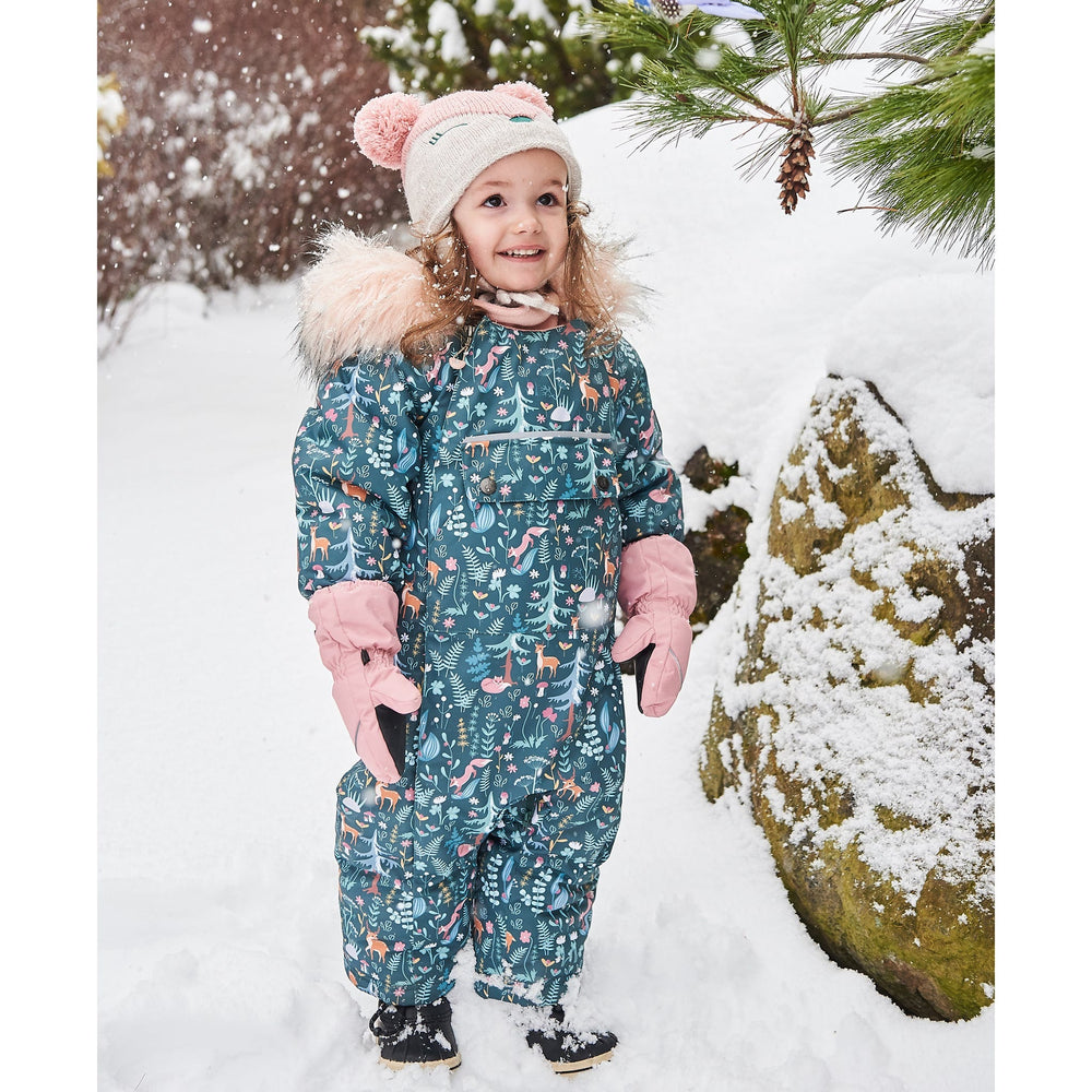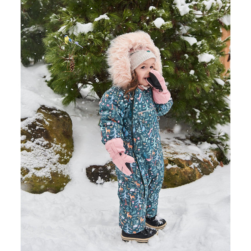 With a playful allover print, our One Piece Baby Snowsuit Sage Printed Woodland Animals Designed for Car Seat will keep your little one warm from head to toe! Designed for wearing in temperatures as low as -30° C (-22° F), this snowsuit is fully insulated and lined with fleece in the body and hood. It features an attached hood with removable faux fur trim, removable mittens and booties, a wind stopper placket and chin guard, and a matching neckwarmer for added warmth!