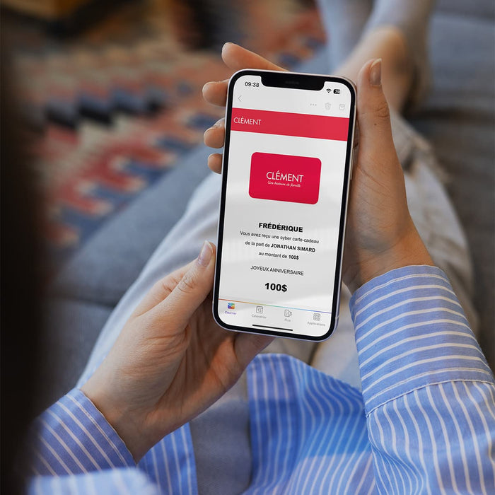 Envoyée par courriel, la carte virtuelle CLÉMENT est envoyés en moins de 24 heures. Échangeable en ligne ou en boutique.