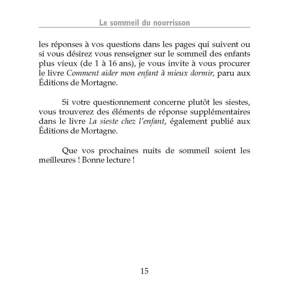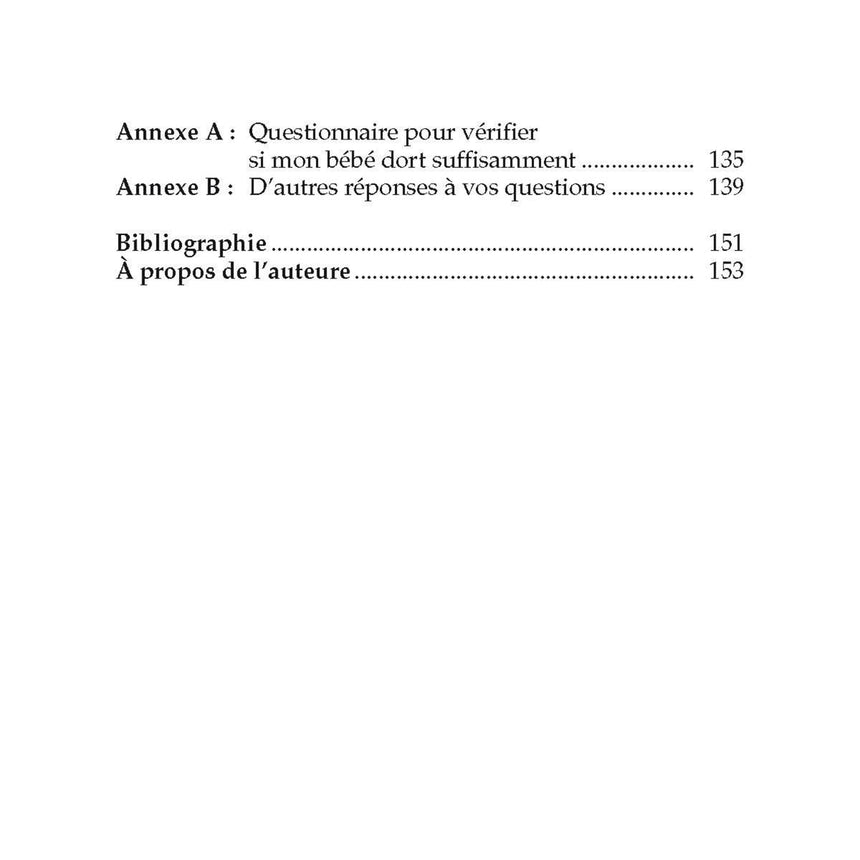 Saviez-vous que les habitudes adoptées dès nos premiers mois de vie déterminent si l'on sera plus tard un bon dormeur ou un candidat à l'insomnie ? Les parents ont donc une responsabilité éducative majeure à assumer dans ce sens. Pourtant, peu d'entre eux connaissent l'importance et les bénéfices d'un sommeil récupérateur sur leur nourrisson ainsi que sur son développement. L'édition revue et augmentée de cet ouvrage aborde les besoins en sommeil du nourrisson et démystifie certains mythes portant sur la tétine, le doudou, le reflux gastro-oesophagien, l'angoisse de séparation et le lien d'attachement. Vous y trouverez entre autres la stratégie des quinze secondes, éprouvée et adaptée pour favoriser l'apprentissage du sommeil chez votre tout jeune bébé. Que vos prochaines nuits de sommeil soient les meilleures !