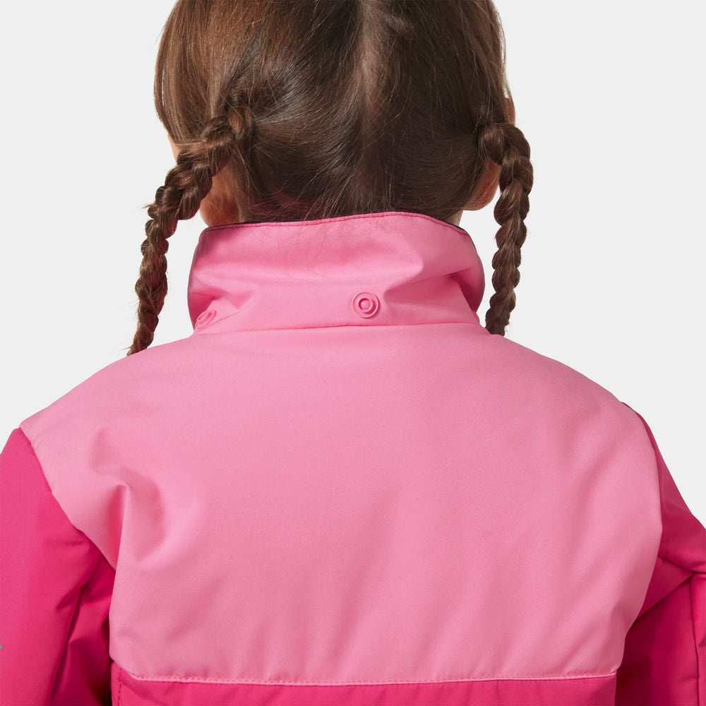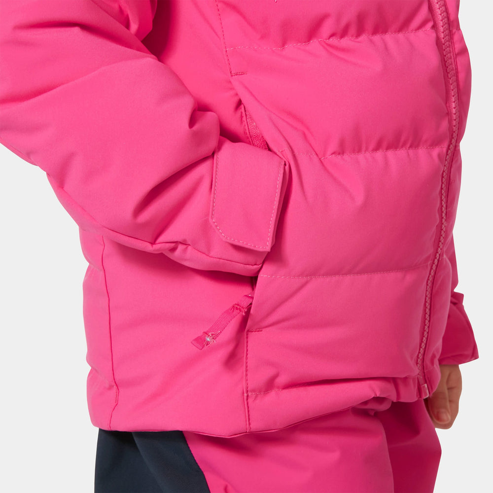 Cette veste de ski isolée pour enfant offre confort et protection sur les pistes. L'extérieur de la veste présente une finition hydrofuge sans PFC pour repousser l'humidité. La construction à chicanes avec une isolation PrimaLoft® de 170 g/m² aide à garder la chaleur à l'intérieur. Le traitement déperlant est écologique et l'isolation est composée à 80% de matière recyclée pour vous protéger tout en préservant l'environnement. Les détails supplémentaires spécifiques au ski incluent une capuche haute visibilité, une mentonnière douce, une poche pour forfait de ski et une jupe pare-neige imperméable pour profiter au maximum des pistes.