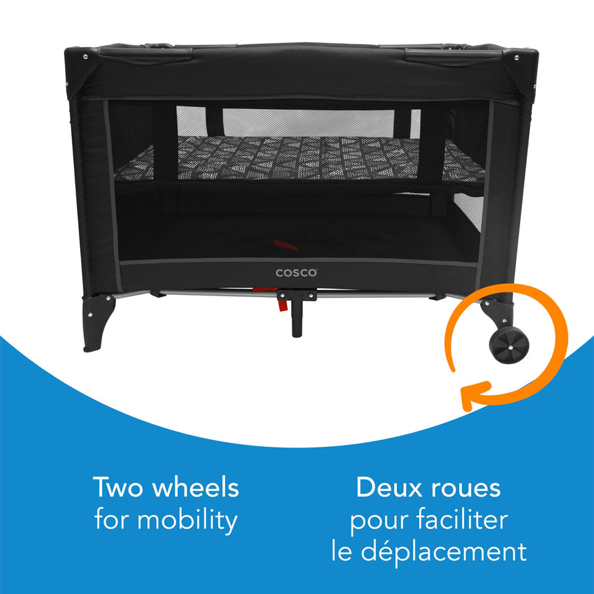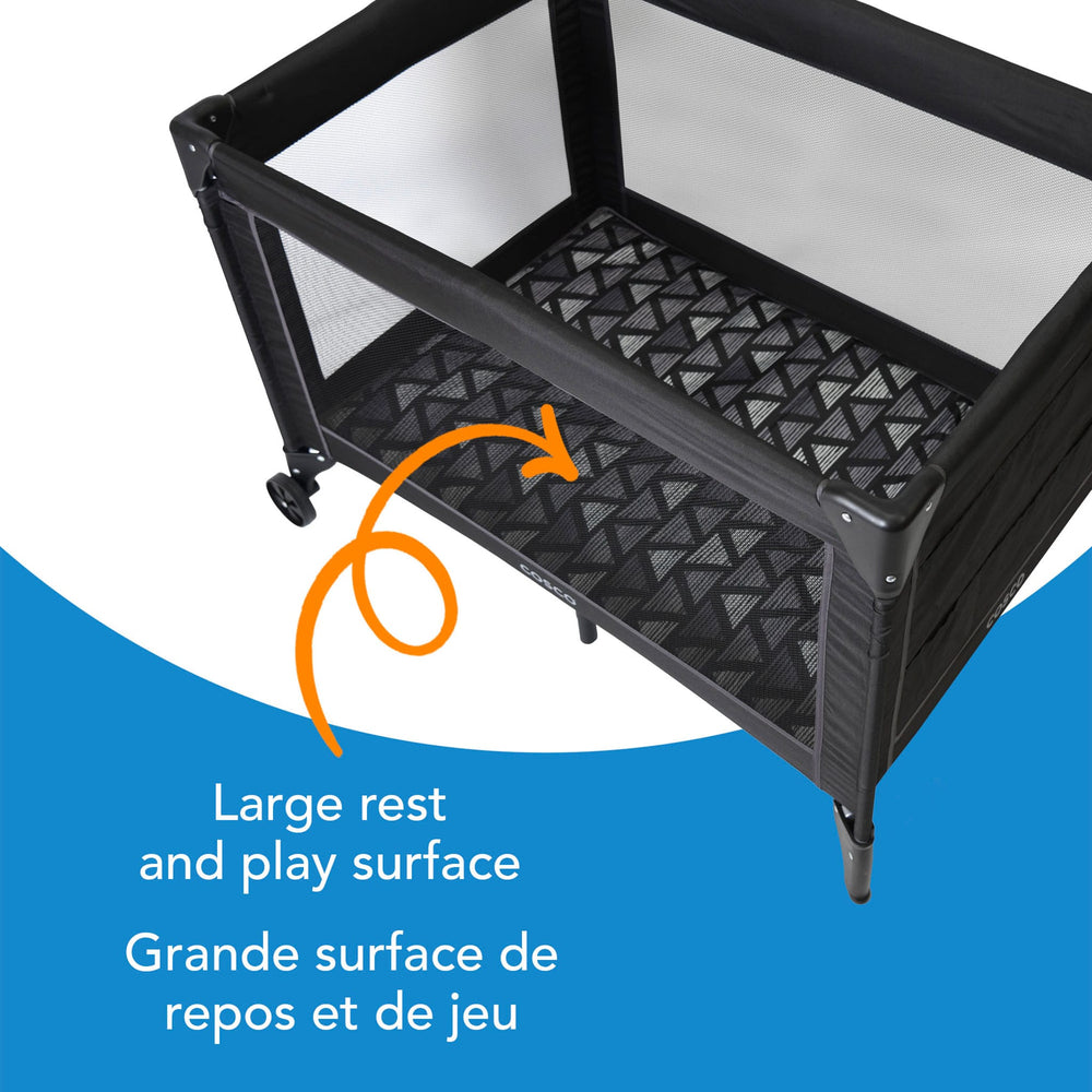 Du plaisir à la maison ou lors de vos déplacements, le Parc pour Enfant Funsport® Plus de Cosco vous offre un design simple qui s'installe en quelques secondes. Il est très spacieux afin de permettre à bébé de faire la sieste ou de jouer, car parfois maman et papa ont besoin de leurs deux mains libres. Le sac de transport et le pliage compact facilite le rangement dans le coffre de la voiture quand vous partez en balade. Cette version Plus du populaire Parc pour enfant Funsport comprend un espace de rangement pratique qui permet de garder facilement les jouets favoris ou une doudou à portée de la main.