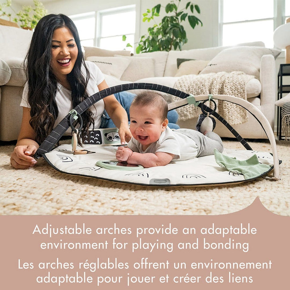 Conçu de manière unique avec des arches ajustables et des anneaux coulissants pour offrir un environnement adaptable pour le jeu et le lien avec le parent.