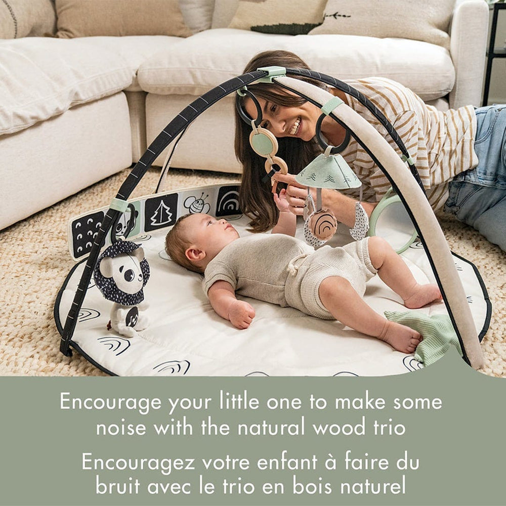Doté d'un charmant lion musical réactif, d'un mobile géométrique contrasté, d'un livre noir et blanc à emporter et d'un miroir pour le temps sur le ventre, et conçu de manière unique avec des arches ajustables et des anneaux coulissants, ce gymini crée un environnement adaptable pour le jeu et le lien.