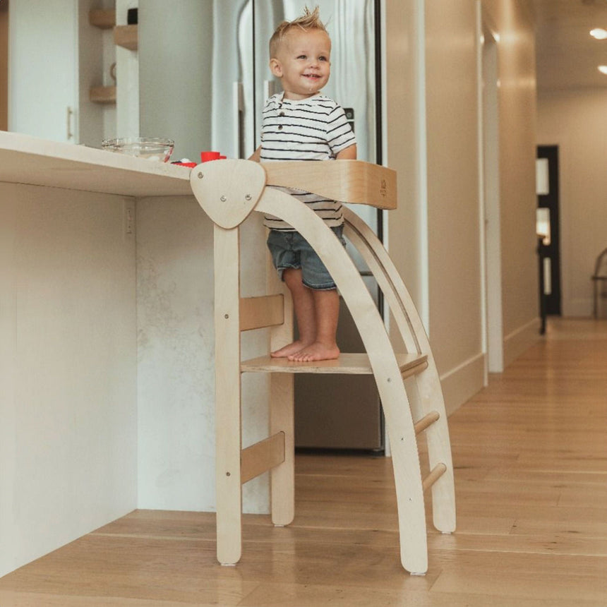 Votre tout-petit a hâte d'aider dans la cuisine mais n'arrive pas à atteindre le comptoir ? Ou bien leur imagination les emmène-t-elle dans un pays lointain où une vision à 360° des locaux est nécessaire pour des raisons de sécurité ? La tour d'observation Kinderfeets est un article polyvalent conçu pour les jeux imaginatifs, éducatifs et fonctionnels de toutes sortes ! Intégrez-le aux activités quotidiennes et connectez-vous avec d'autres articles Kinderfeets Pikler pour explorer encore plus d'opportunités de jeu.