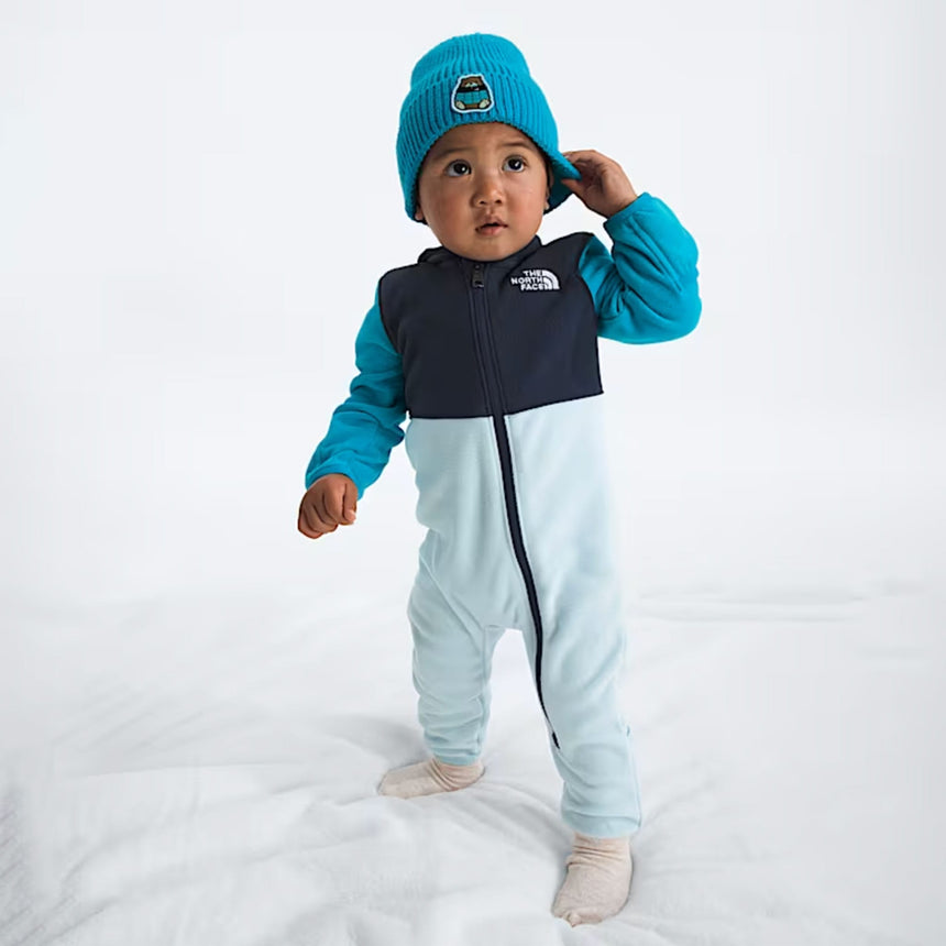 Designed for the youngest explorers, the Baby Glacier One-Piece is a soft, 100% recycled fleece layer. Featuring an attached hood and fold-over mitts, it’s made for their first adventures in the backyard (or the great outdoors). We’ve updated our youth sizing. Please use our sizing guide to find your best fit.