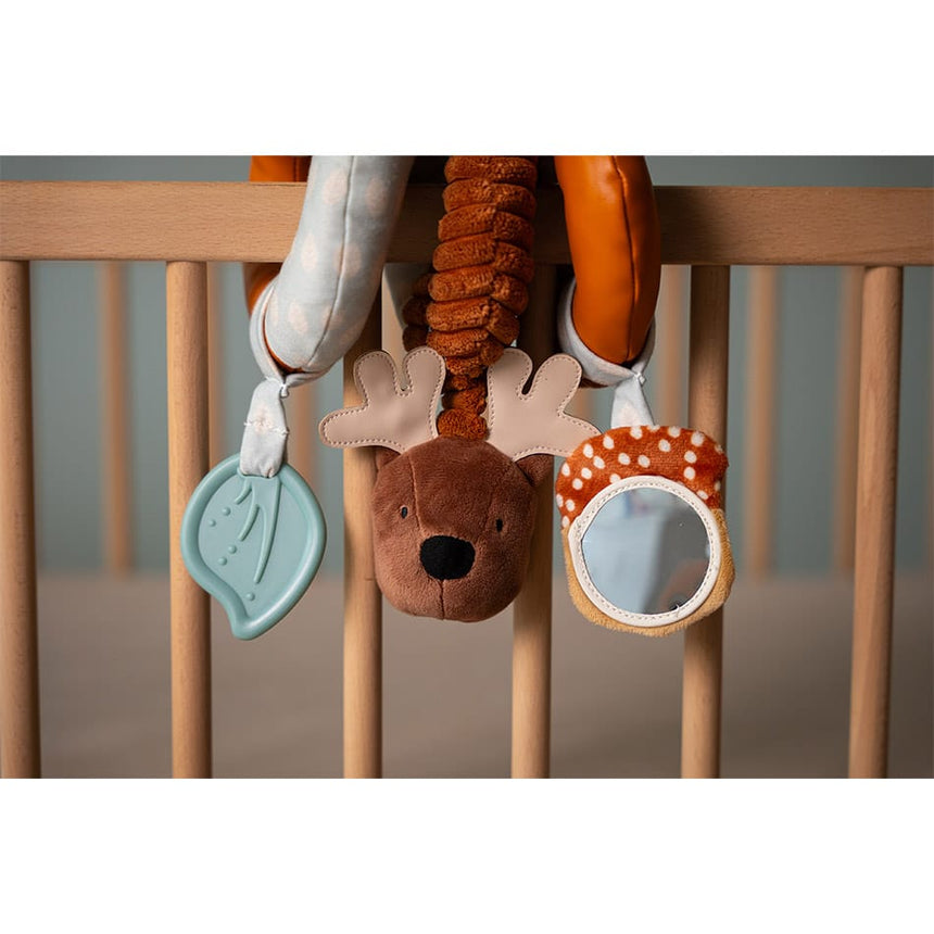 -The Little Big Friends activity spiral will amuse babies when in a stroller or a car seat. It can also be used in a bed or a crib.
