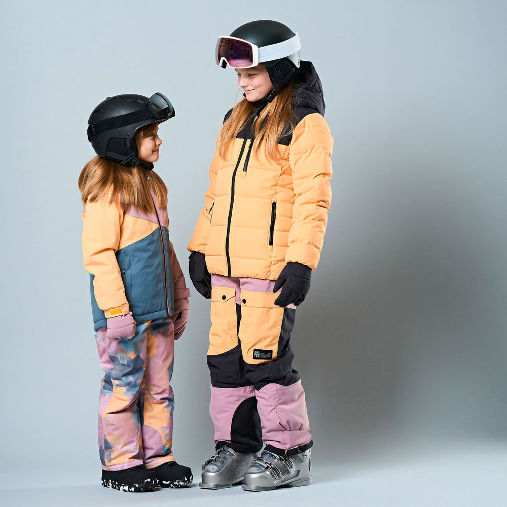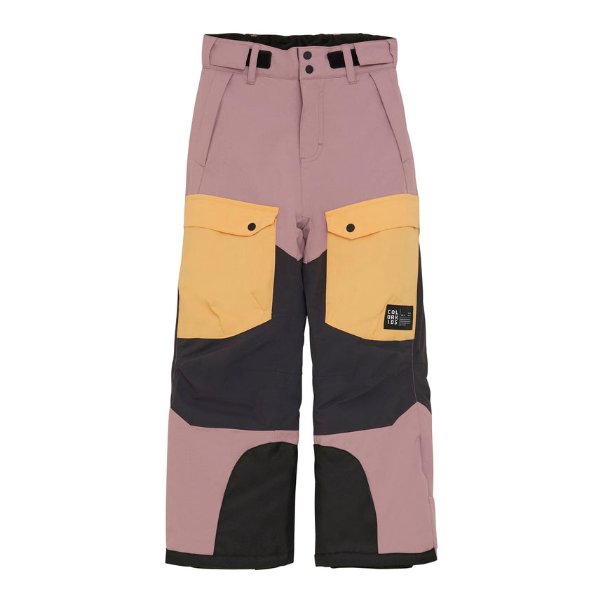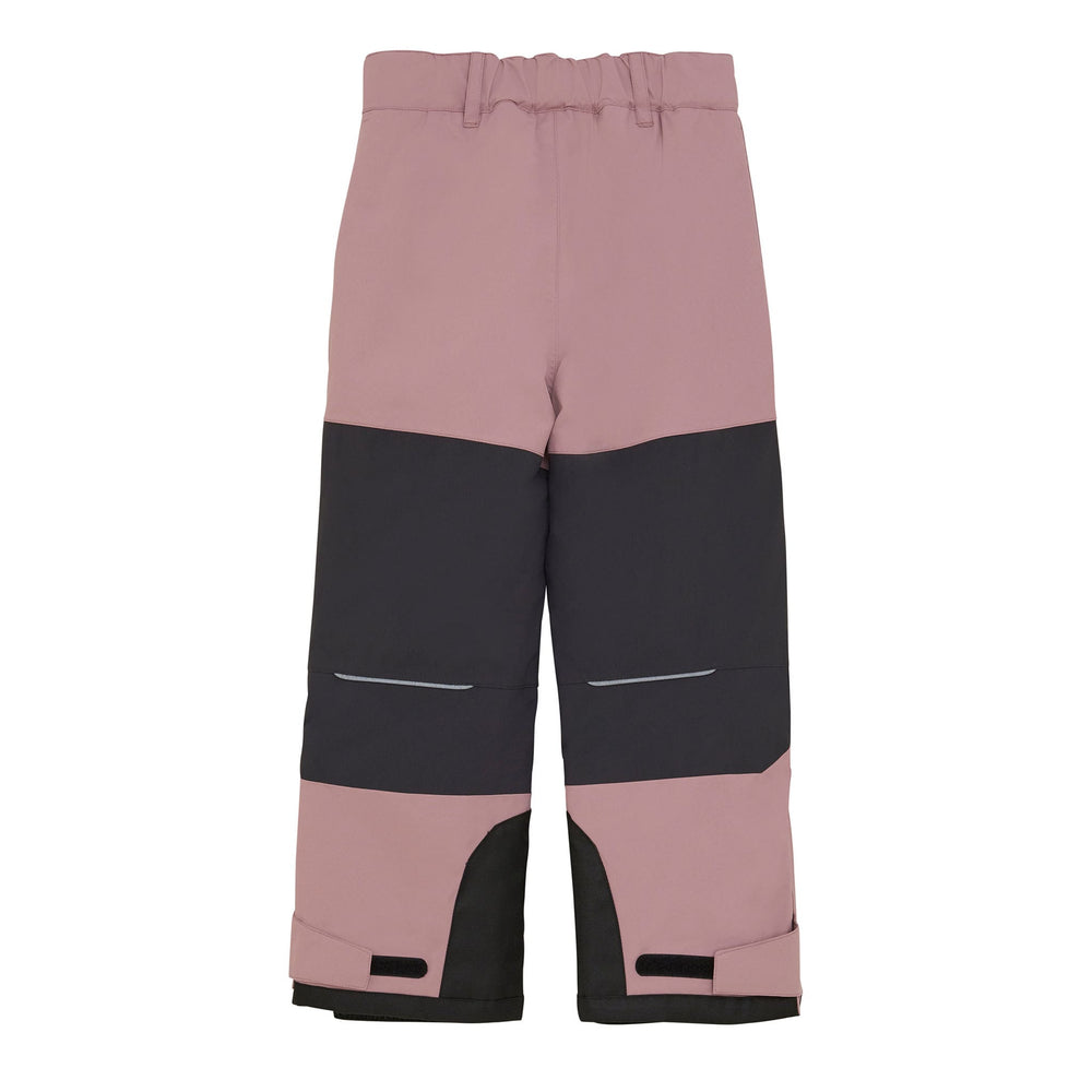 Warm ski pants for your child in durable material with color block design. The material is breathable, windproof and waterproof, so your child can be out in rain, snow and wind without getting cold and wet. Tested wear resistance of >60,000 rubs, water column pressure of 15,000 mm. and breathability 3,000. The trousers have two pockets on the sides and two pockets on the front. They have snow guards in the leg openings that keep the snow out. Closes with a zip and snap button at the front and has an adjustable waistband with elastic. Reflective details front and back. On the inside there is a practical name tag for the child's name. The ski pants are made of recycled material. Coated with BIONIC FINISH® ECO. Certified acc. to GRS - Made with more than 50% Recycled Material