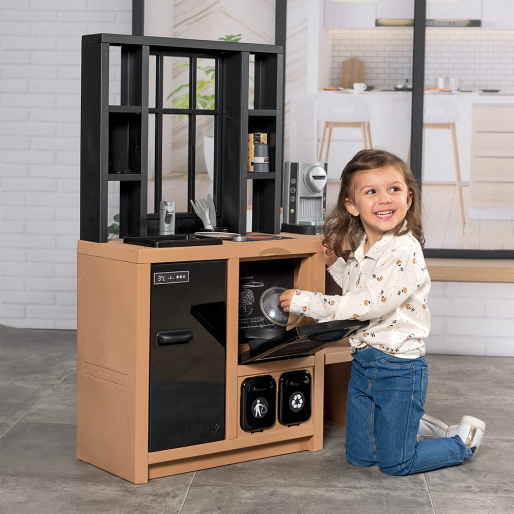 Kids can let their culinary imaginations run wild with this large, well-equipped kitchen. Featuring a cooking surface, refrigerator, sink and coffee maker, this kitchen offers plenty of opportunities for play. With 32 included accessories, such as utensils, cutlery and dishes, little chefs can get ready to serve delicious meals to family and friends. The counter height is 50 cm, making it an ideal kitchen for children of all ages.