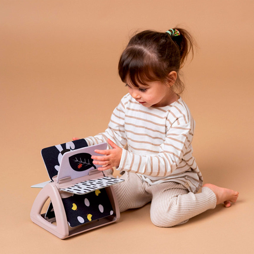 Black & White Rattling Spinning Book is a delightful sensory companion for babies.